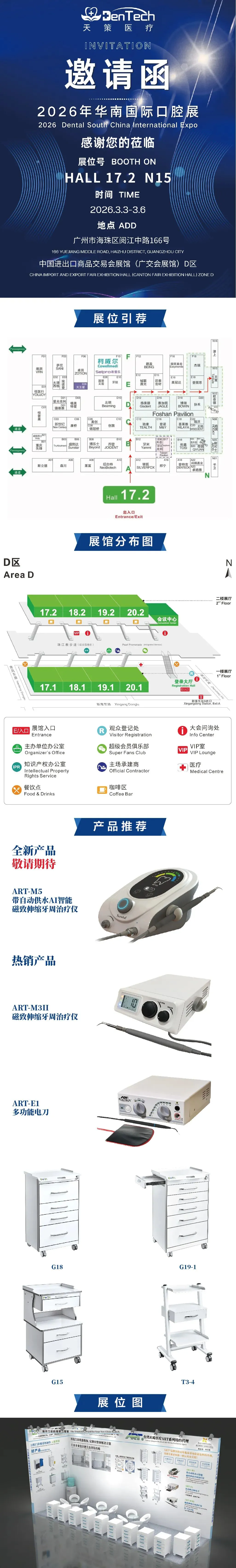 2026华南国际口腔展—广州见!不止于展会,更是天策医疗与各位的一次深情相聚!感谢您在百忙之中阅读此邀请函。 承蒙各位新老客户长期以来对天策医疗的支持与厚爱,值此2026年华南国际口腔展来临之际,我们诚挚地向您发出邀请,期待您莅临我们的展位(17.2 N15)参观指导 。 这是一场口腔医疗行业的盛宴,也是我们与您面对面交流、倾听需求的最佳契机。我们已准备就绪,希望能在此次盛会上与您携手,共同探讨行业新趋势,开拓合作新机遇!