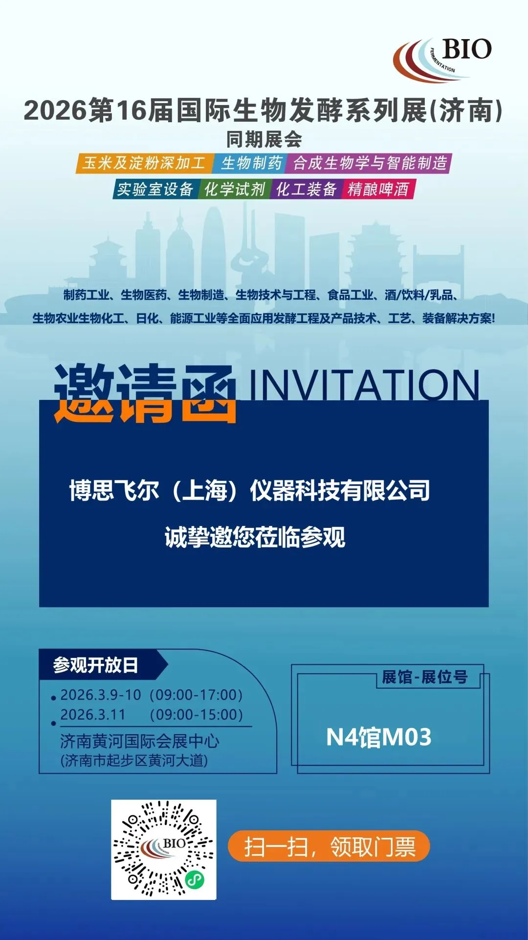 每一次相遇,都孕育着合作的契机;每一次交流,都能激发出创新的火花。2026 年 3 月 9 日至 11 日,第十六届济南国际生物发酵展即将盛大启幕,博思飞尔诚挚期待您的光临。愿我们在展会现场驻足交流、深入探讨,携手探索生物发酵的广阔天地,共话行业发展新机遇,共赢产业美好新未来!