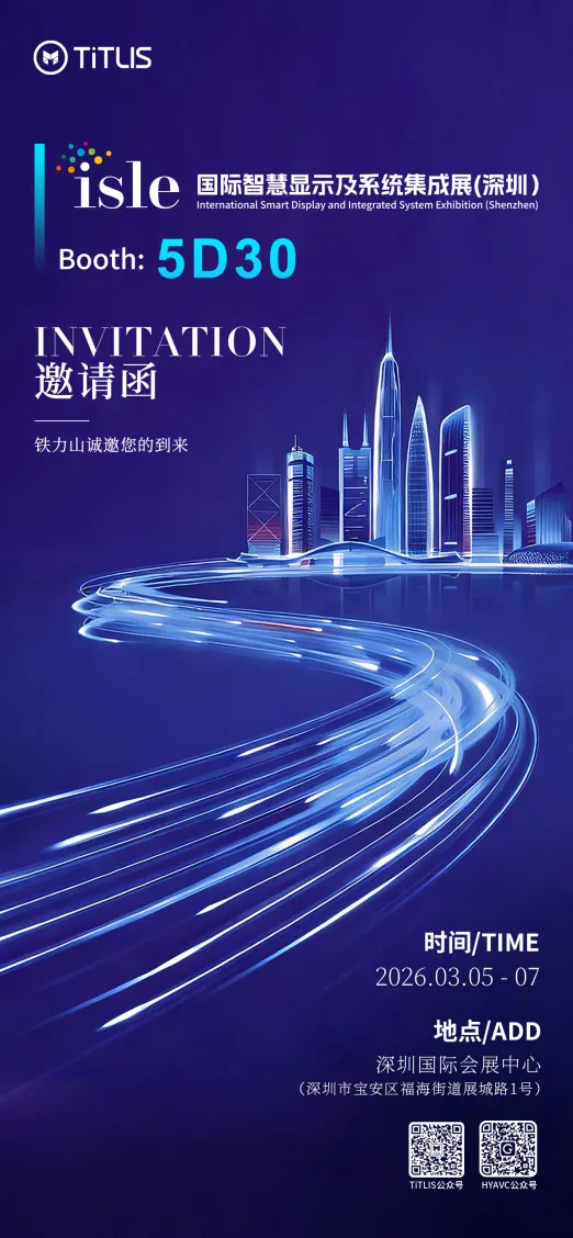 2026年3月5号-7号,全球瞩目的 ISLE 2026(国际智慧显示及系统集成展) 将在深圳国际会展中心(宝安)盛大启幕。作为关键任务环境解决方案专家,铁力山将携手双品牌 TiTLIS & HYAVC,在 [5D30] 恭候您的光临。