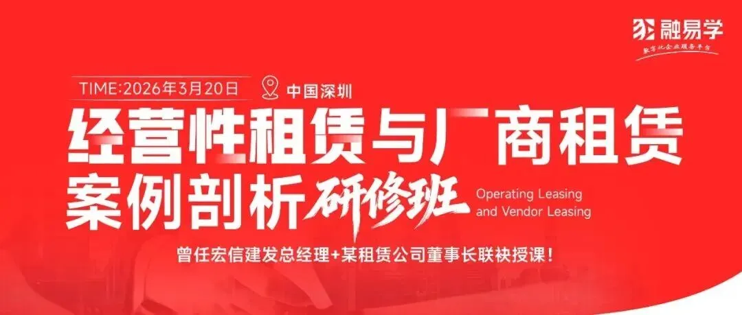 在新春之际,融易学特邀两位资深实操专家,结合实战案例与业务实操,覆盖从赛道选择、渠道获客、资产运营到残值盈利的全流程实操要点。通过一天的系统学习,助力学员在行业转型关键期把握经营性租赁与厂商租赁的核心逻辑,实现从资金提供者向资产运营者的转型升级。