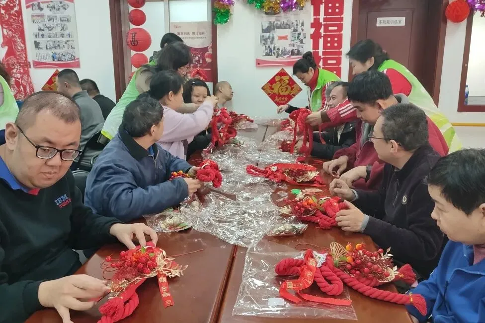 指尖传情,巧手编织幸福愿景。 系列活动在“新春巧手迎祥——‘骏马奔腾’中国结挂饰制作”中拉开序幕。在专业老师指导下,残疾人朋友认真学习编结技法,将祈愿融入丝丝缕缕之中。大家互帮互助、协作共学,一根根彩线在指尖穿梭缠绕,化作寓意吉祥的挂饰,寄托着“马到成功”的美好期许,也编织出邻里守望、残健共融的温情画卷。