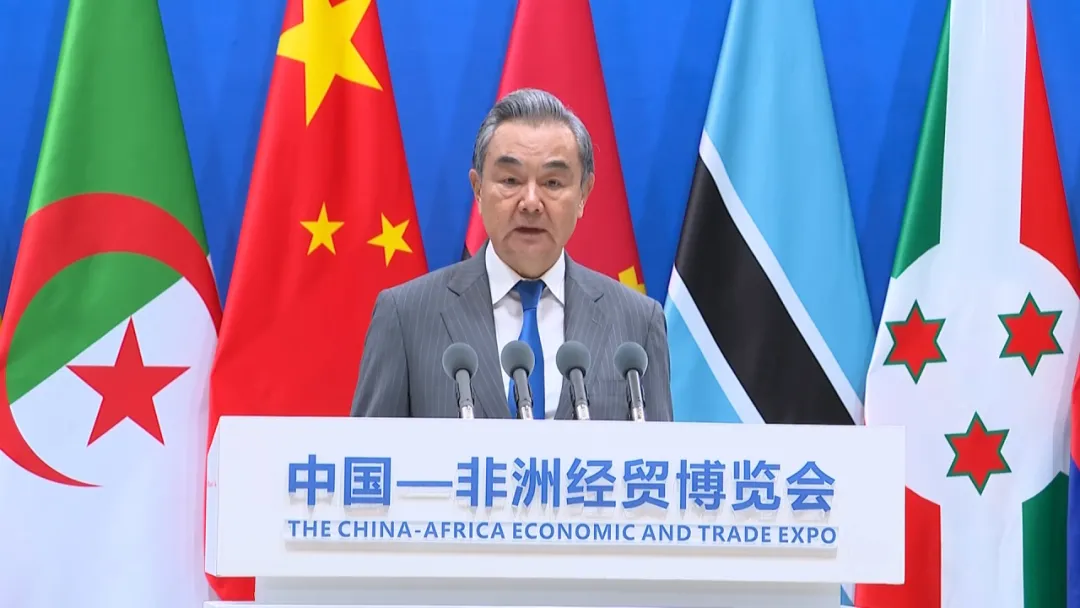 王毅说,设立中非经贸博览会是习近平主席亲自宣布的重要对非合作举措。本届博览会主题是“中非共行动 逐梦现代化”。实现现代化是中非28亿多人民的共同梦想,也是中非命运共同体的重要主题。无论国际风云如何变幻,中国都将与非洲坚定站在一起,为非洲现代化提供有力支持,做非洲携手发展的真朋友、肝胆相照的好兄弟。一是进一步开展中非治国理政交流,共同探讨加快实现现代化的路径,支持非洲各国探索符合本国国情的现代化道路;二是进一步推动中非发展战略对接,加快落实“十大伙伴行动”;三是进一步扩大对非洲开放力度,商签共同发展经济伙伴关系协定;四是进一步深化对非洲务实合作,助力非洲推进工业化进程和数字化转型。