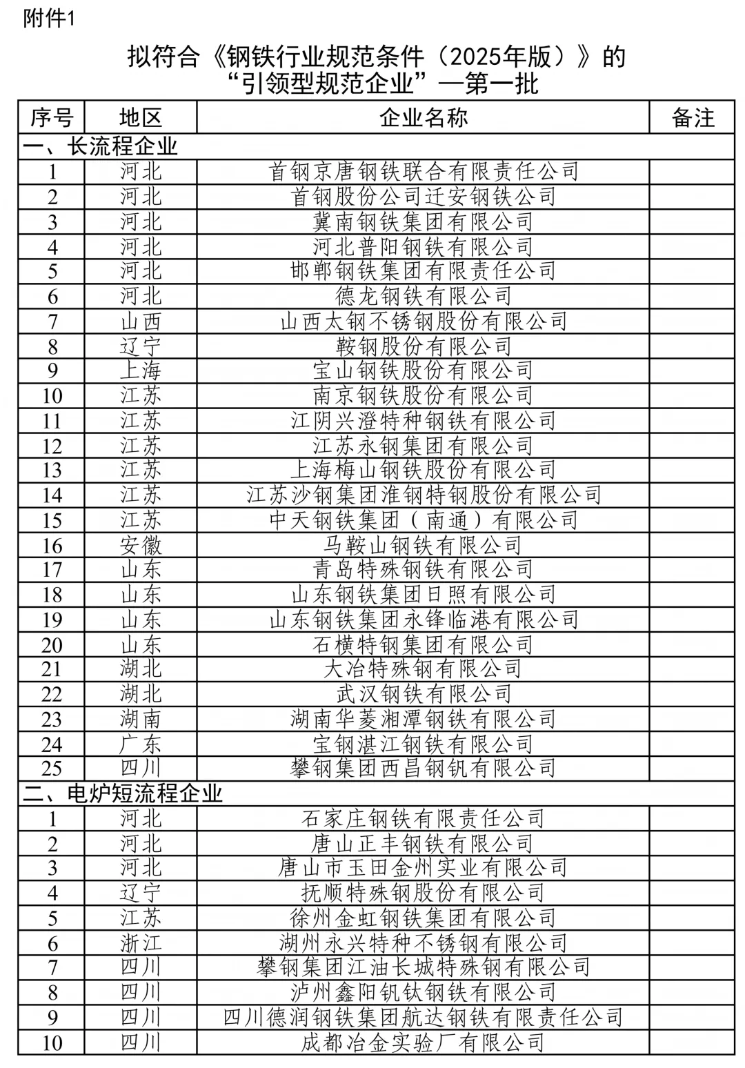 附件:1.拟符合《钢铁行业规范条件(2025年版)》的“引领型规范企业”-第一批