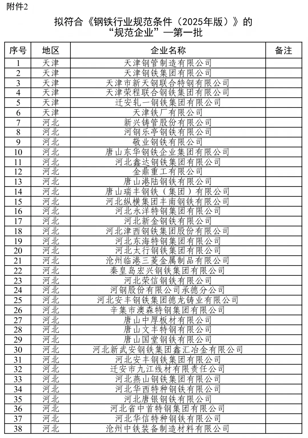 2.拟符合《钢铁行业规范条件(2025年版)》的“规范企业”-第一批