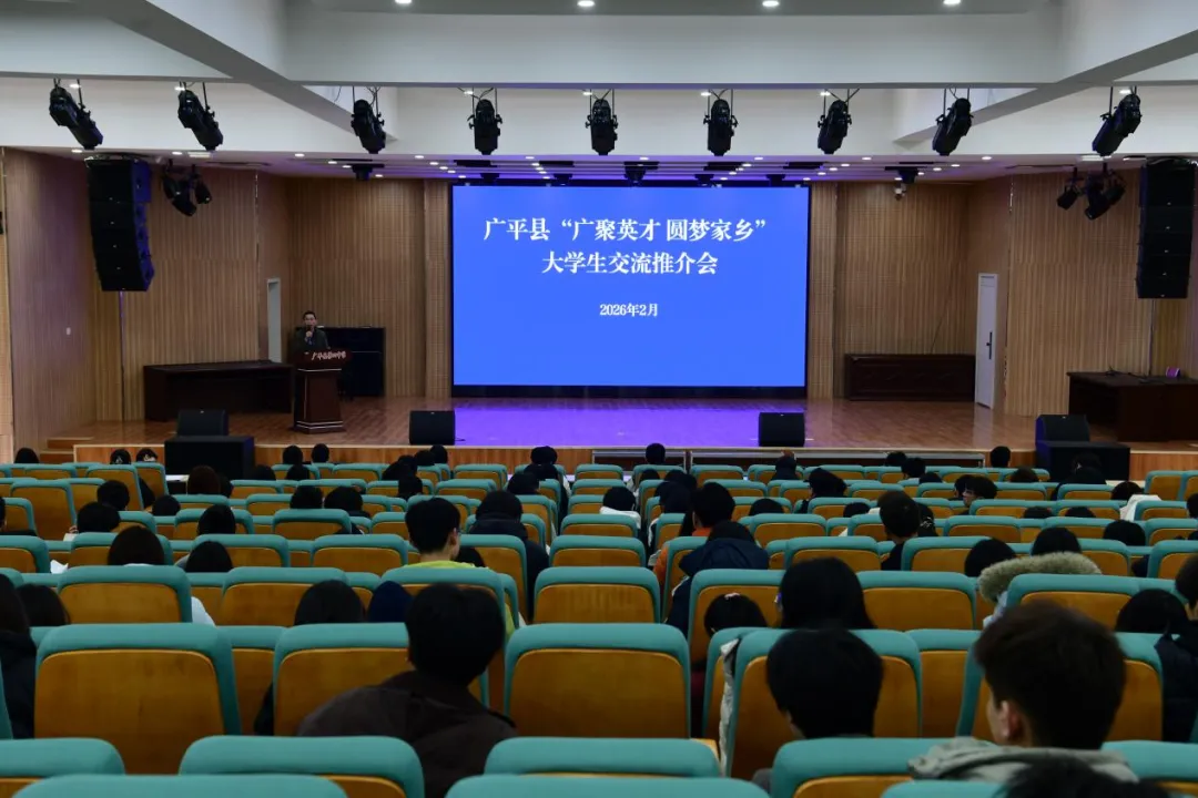 春风送暖,英才汇聚;心系故土,筑梦家乡。2月26日上午,在县第四中学举行广平县“广聚英才 圆梦家乡”大学生交流推介会。本次活动是深入推进“十万学子进邯郸”的重要举措,也是我县招才引智、服务青年、助力发展的一次集中行动。