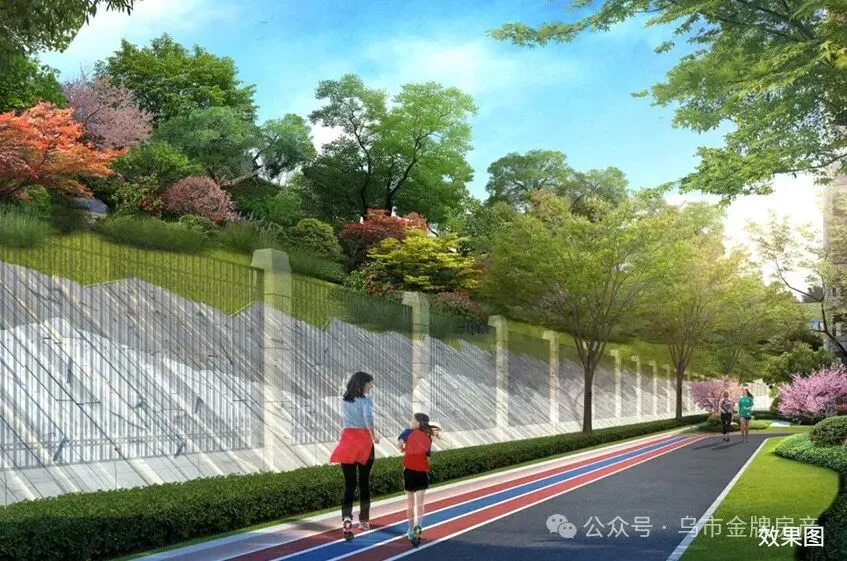 【阳光跑道】:围绕小区内部景观而建,接通生态公园园路,将园区内的运动区域串联起来,打造具有特色的绿色生态运动小区。
