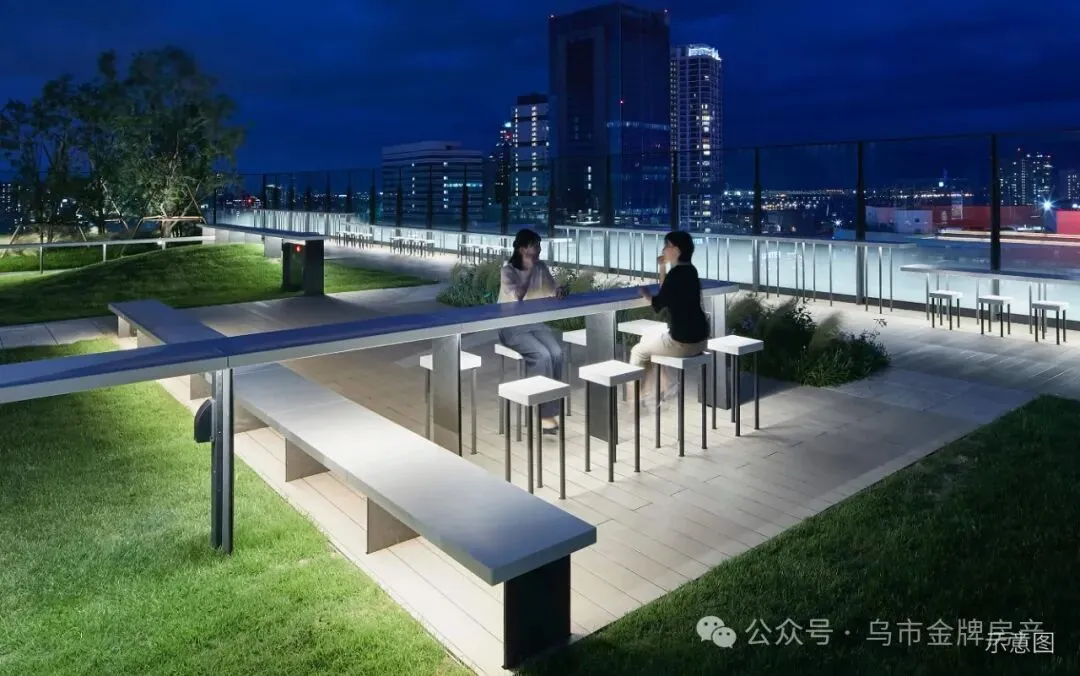 【屋顶花园】:为人们提供多功能的开放空间。供居者在这里,休闲,观赏风景,成就高楼之上的隐逸桃源。