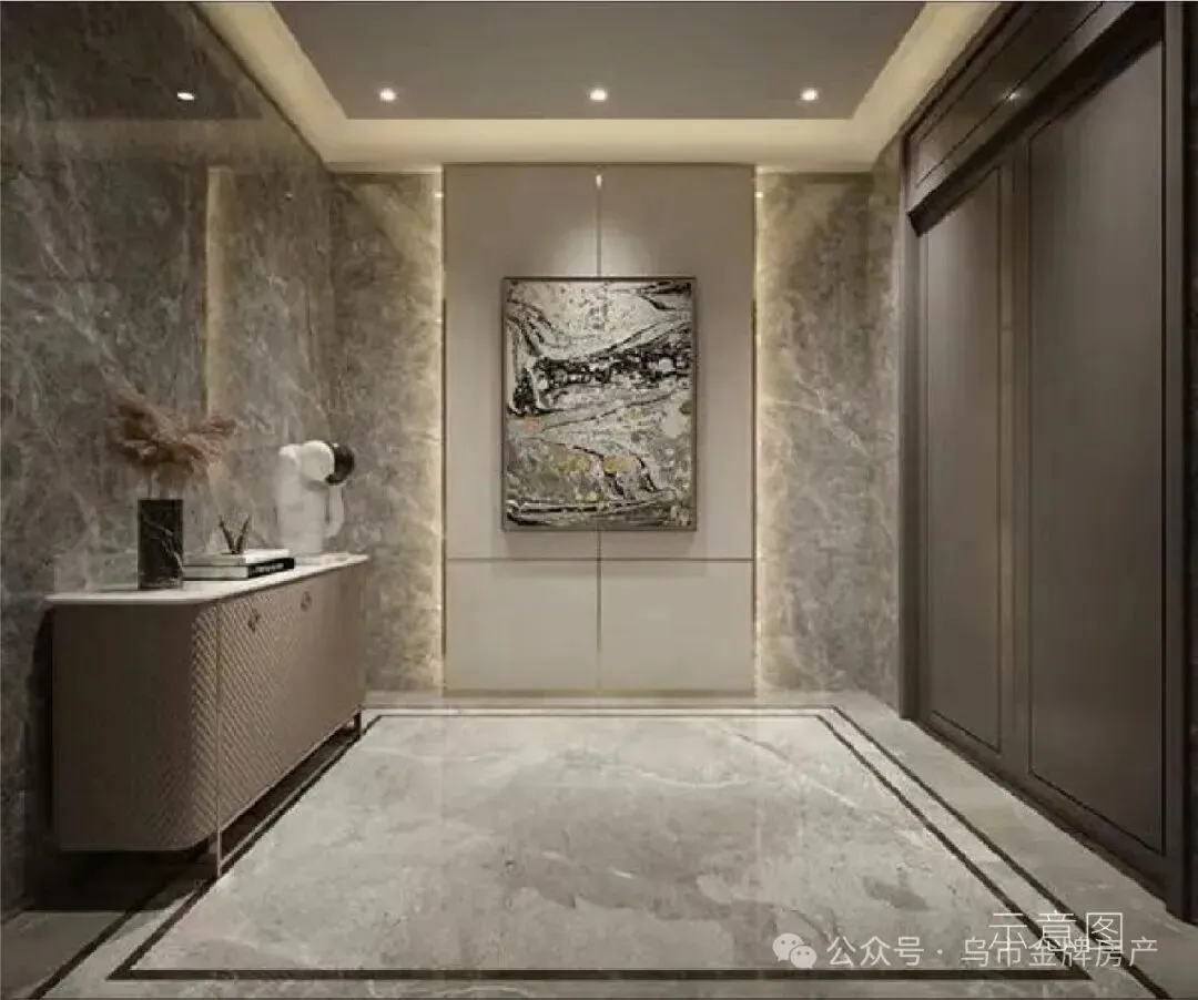 【精装入户】:精装入户大堂,出入间,自在有度。精装地下层电梯厅,墙、地砖精心铺设,以考究礼序,犒赏不凡人生。