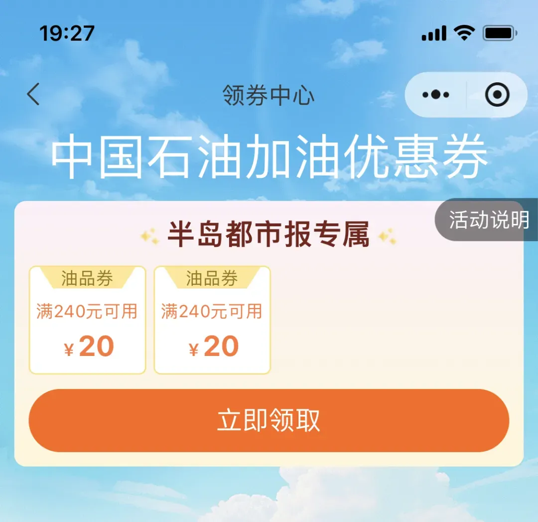 关于两张中国石油20元加油优惠券的具体领取方法,有以下几个注意要点!