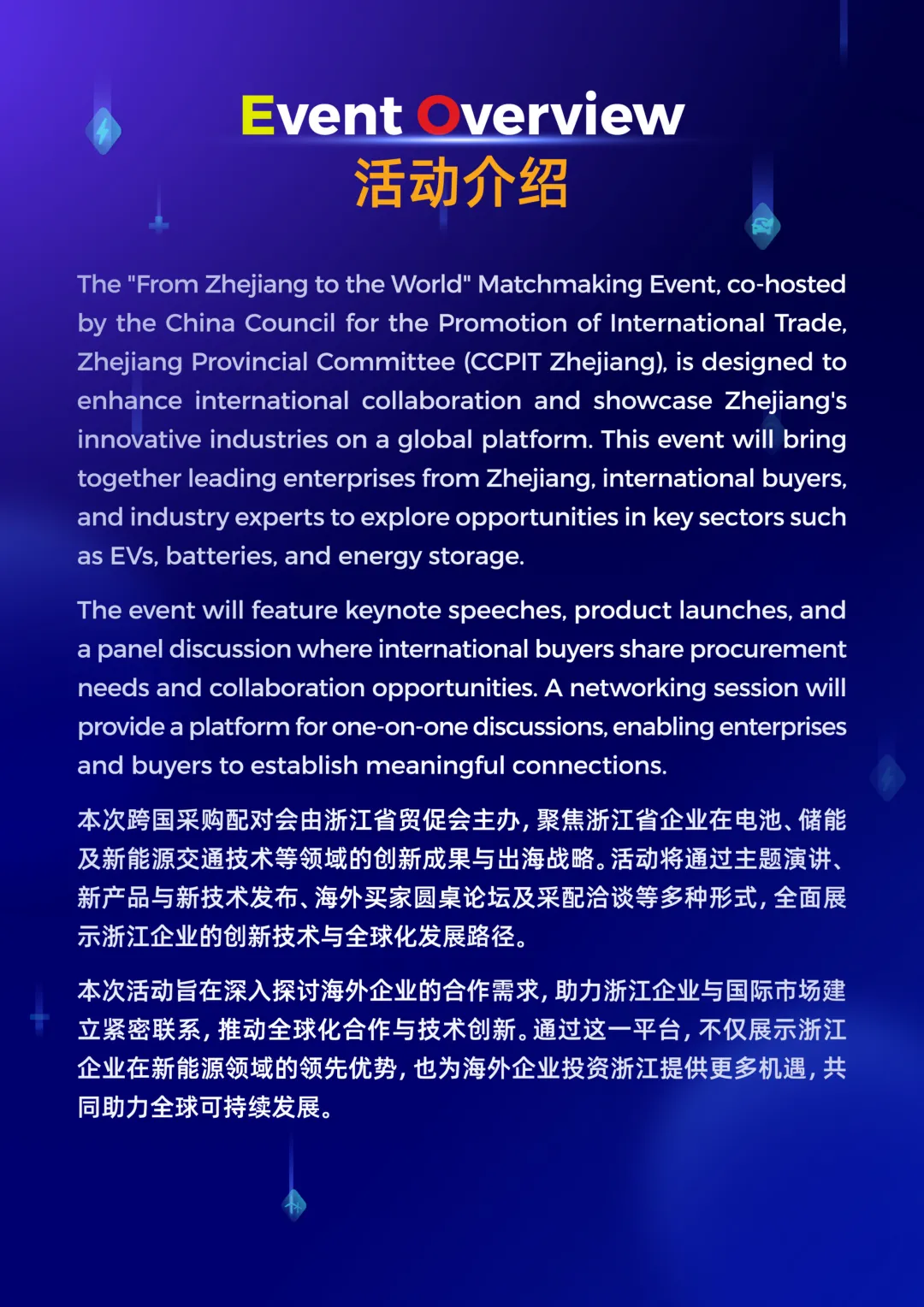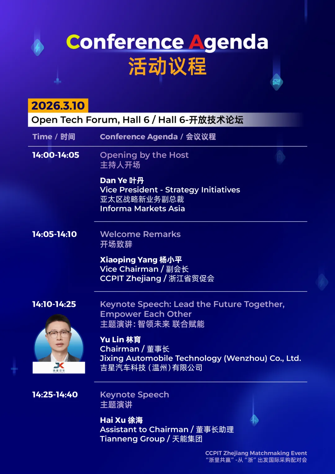 由浙江省贸促会主办的“浙里共赢”-从“浙”出发国际采购配对会将于2026年3月10日在香港亚洲国际博览馆举办,聚焦浙江省企业在电池、储能及新能源交通技术等领域的创新成果与出海战略。浙江省贸促会领导、英富曼集团领导嘉宾,浙江省参展企业代表,来自欧洲、美国、东南亚、日韩、澳洲等买家共约150人。星巴达控股集团董事长、吉星汽车董事长林育将受邀出席本次国际采购配对会,并做“智领未来 联合赋能”的主题演讲。