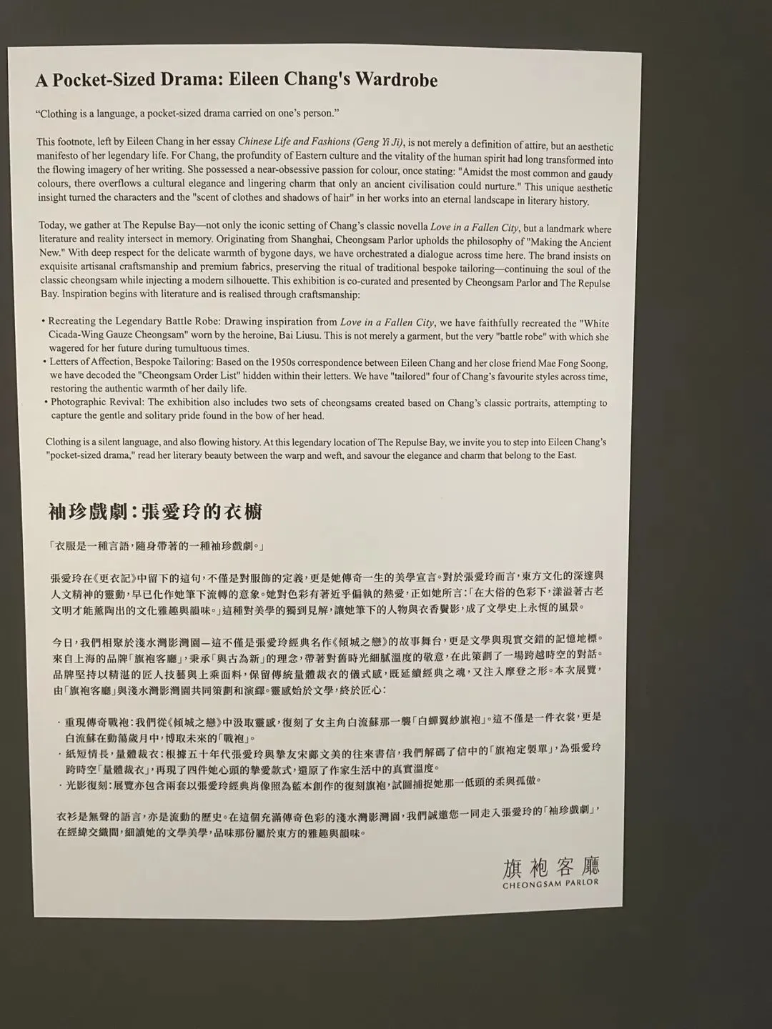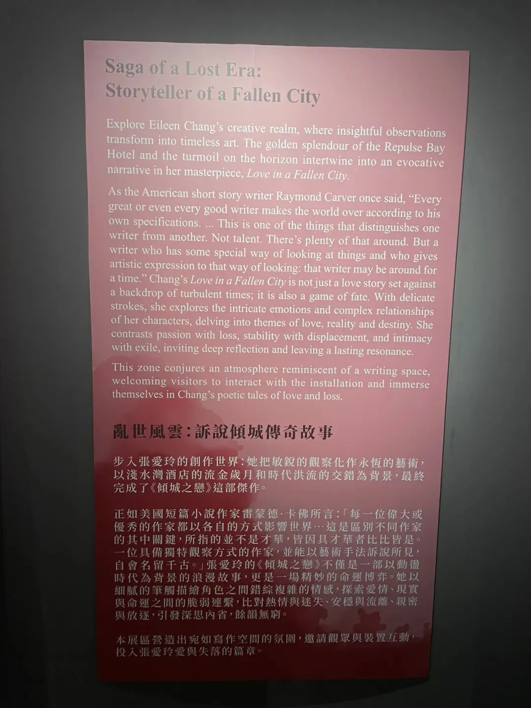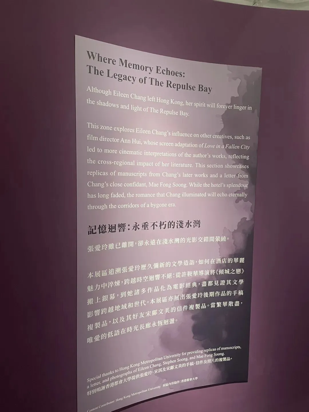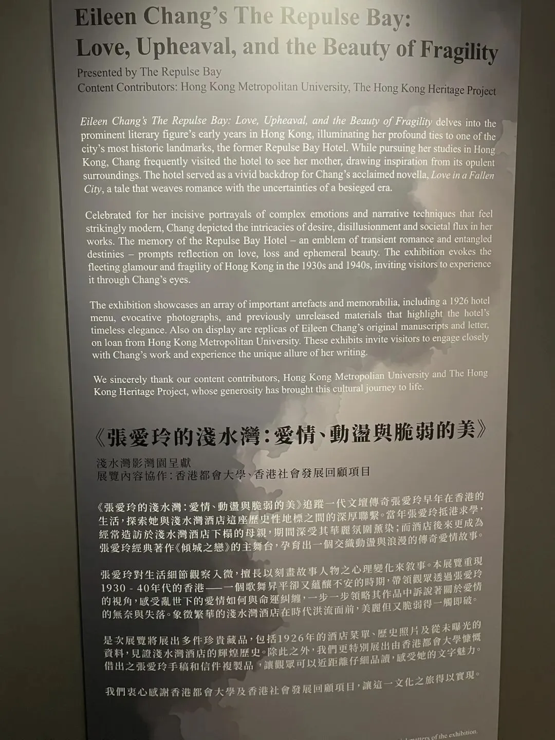 这并非我第一次来香港,但来到浅水湾确实第一次。也许所谓因缘和合,也是正好遇上张爱玲展览。