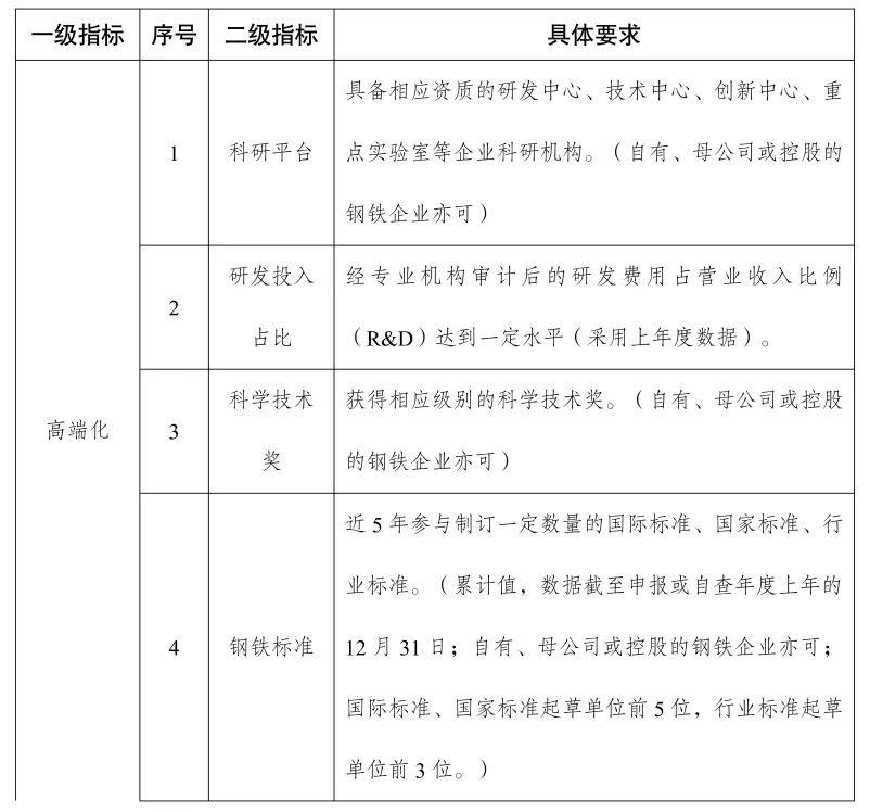 注:第1项至第25项指标适用于长流程企业和短流程企业;第26项至第32项指标为特色化指标,仅适用于短流程企业。
