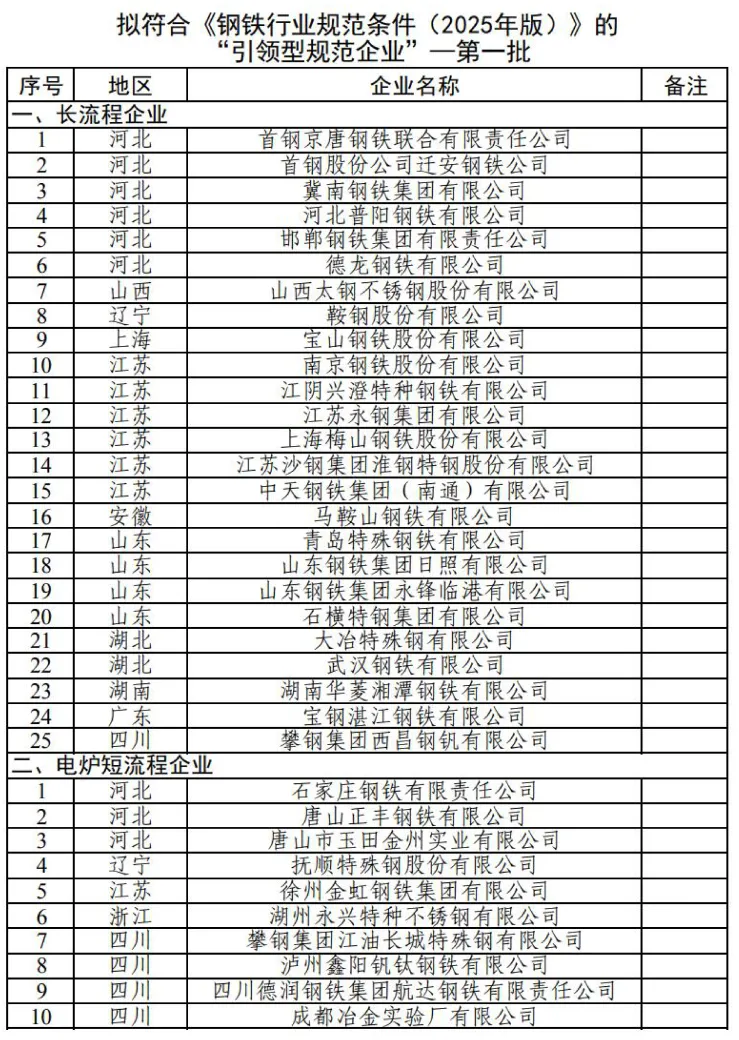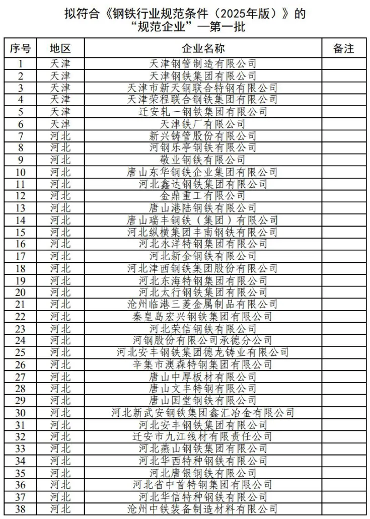2月25日,工业和信息化部发布《关于符合《钢铁行业规范条件(2025年版)》企业(第一批)的公示》。