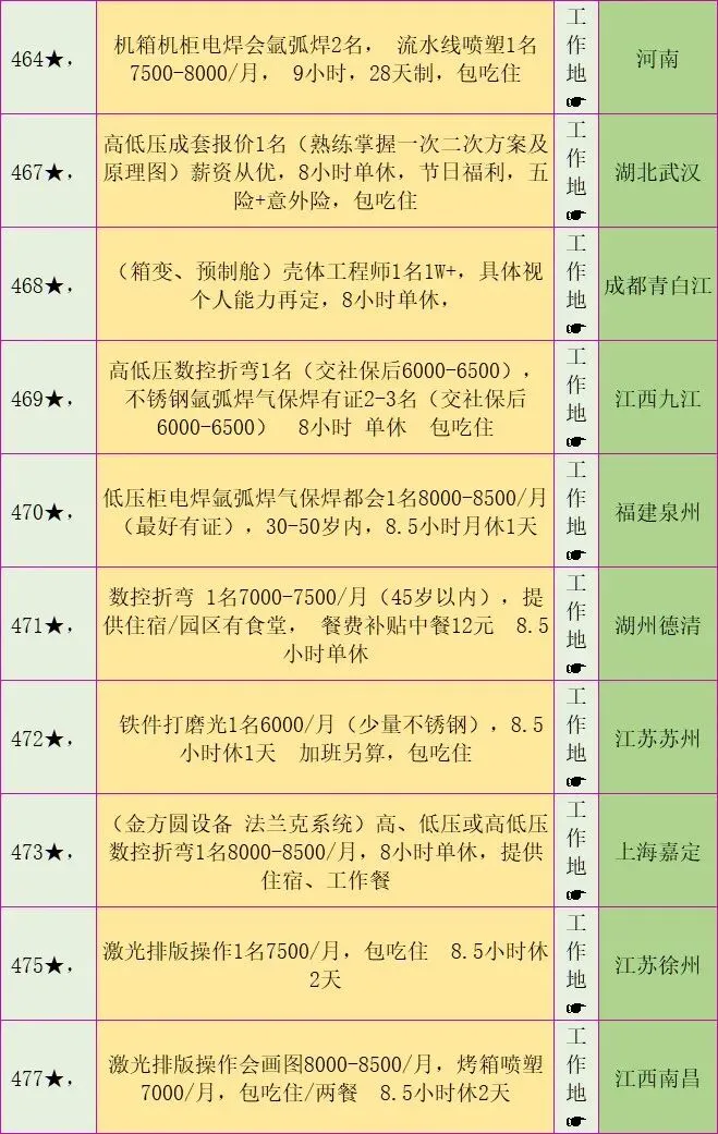有求职意向的工友们速速联系我们, 查看更多工作岗位关注↓↓↓