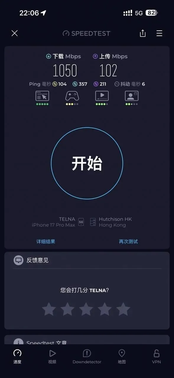 IP 来自新加坡 Telna,在国内漫游中国联通(5G仅NSA)