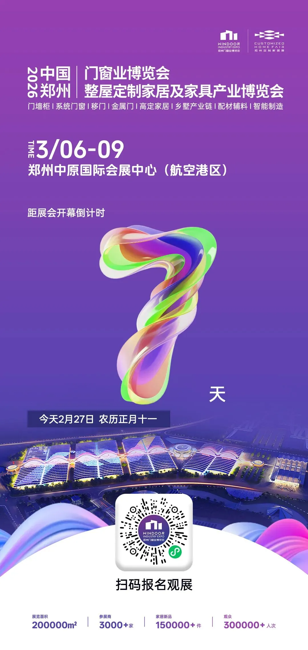 作为中国家居行业的开年第1展,2026中国郑州门窗业暨整屋定制家居及家具产业博览会将于2026年3月6-9日在郑州中原国际会展中心(航空港区)盛大举办!