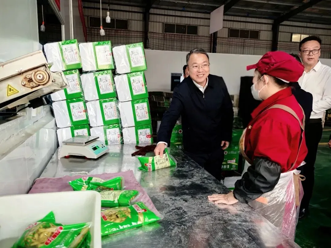 来到六盘水美味园食品有限公司,蒋兴勇对该企业大力发展促就业、技术攻关促增收的做法予以肯定,强调要聚焦品种品质品牌推进“强一接二连三”,品牌化系列化加强辣椒全产业链开发,积极培育新业态,在推动农业农村现代化进程中贡献力量。