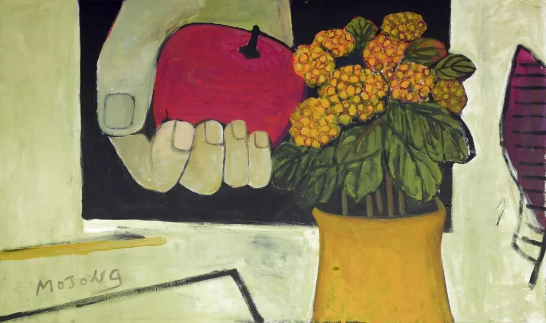 贺慕群(中国,1924–2012)《水果花》,2002年布面油彩110×185 厘米
