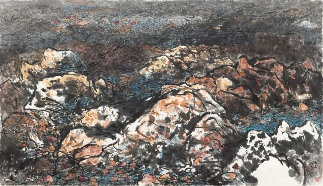 张雷平(中国,1945年出生)《磐石》,2022年纸本水墨145×242 厘米