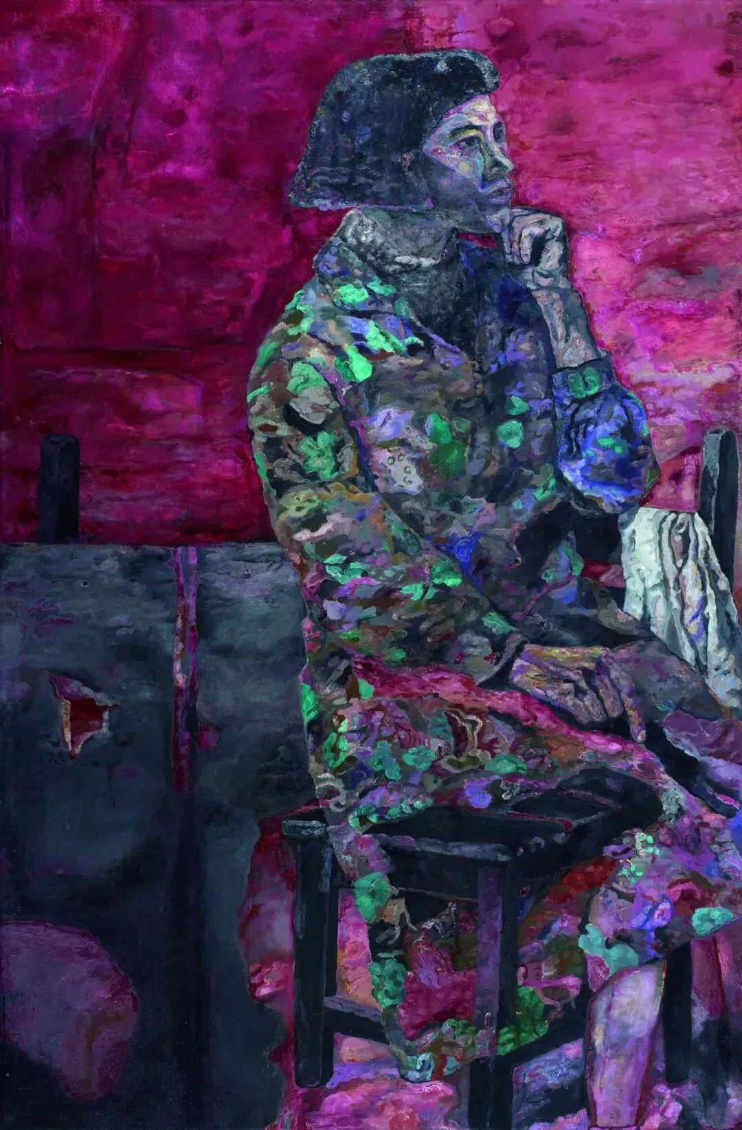 蔡锦(中国,1965年出生)《紫红色背景》,1990年布面油彩121×79 厘米