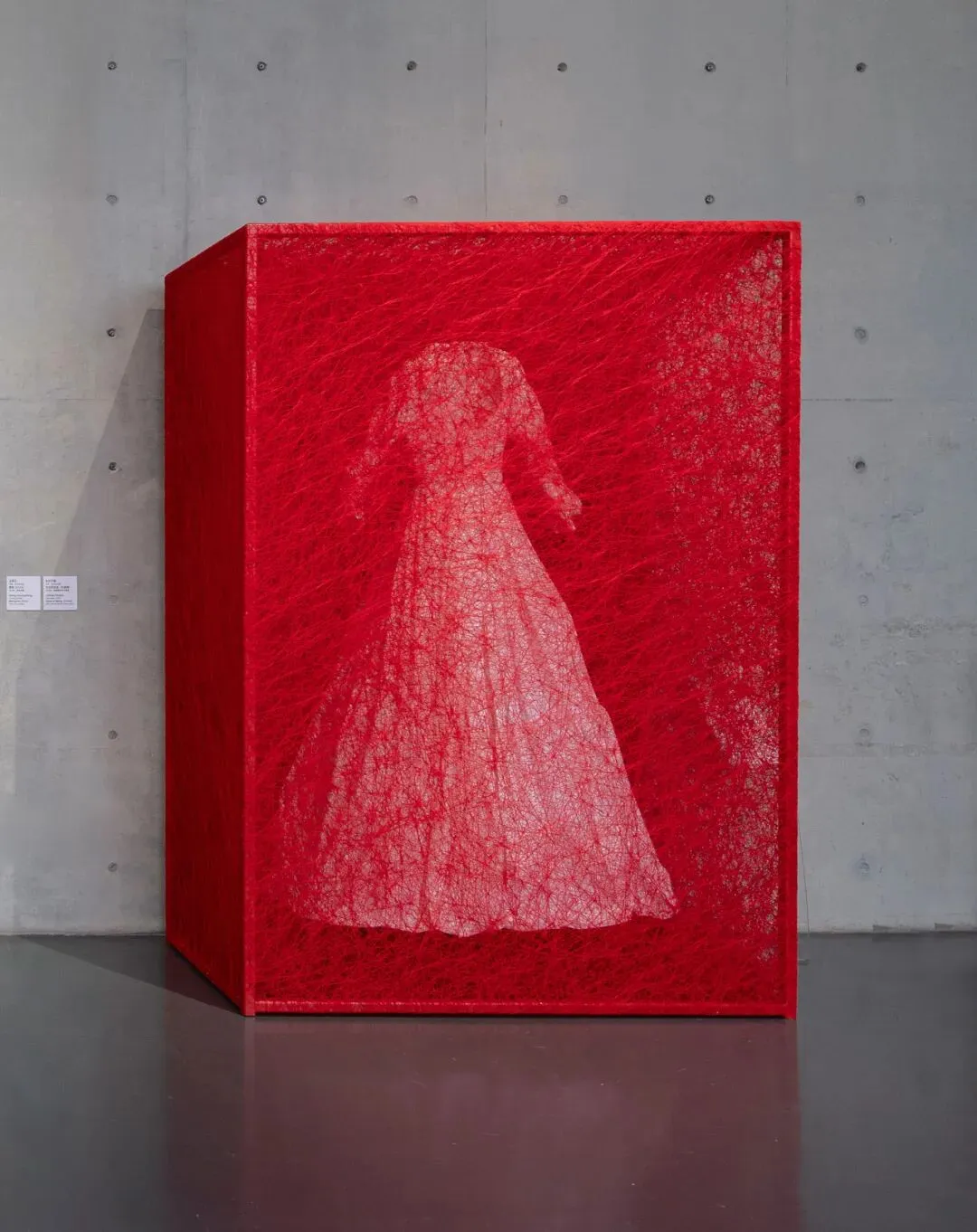 盐田千春(日本,1972年出生)《存在的状态(礼服裙)》,2022年金属框架 线 礼服裙260×180×89 厘米