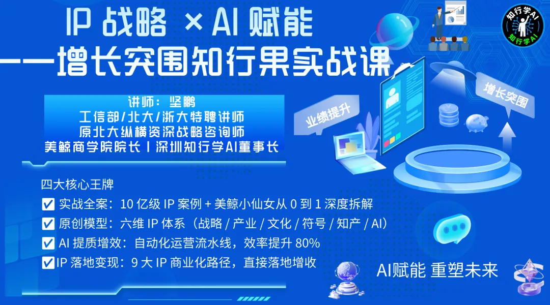 上一篇文章我们聚焦“适合打造IP的重点产业选择”,拆解了潮玩、美妆、大健康三大行业的IP成长优势,以及美鲸的赛道选择与IP适配性分析方法,明确了“产业是IP的生存土壤,适配是IP的成长关键”这一核心认知。在《IP 战略 ×AI 赋能——增长突围知行果实战课(融合版)》的“产业洞察”模块中,找到优质产业赛道后,如何依托产业资源实现IP落地、打破IP与产品脱节的困境,成为IP打造的核心难题。