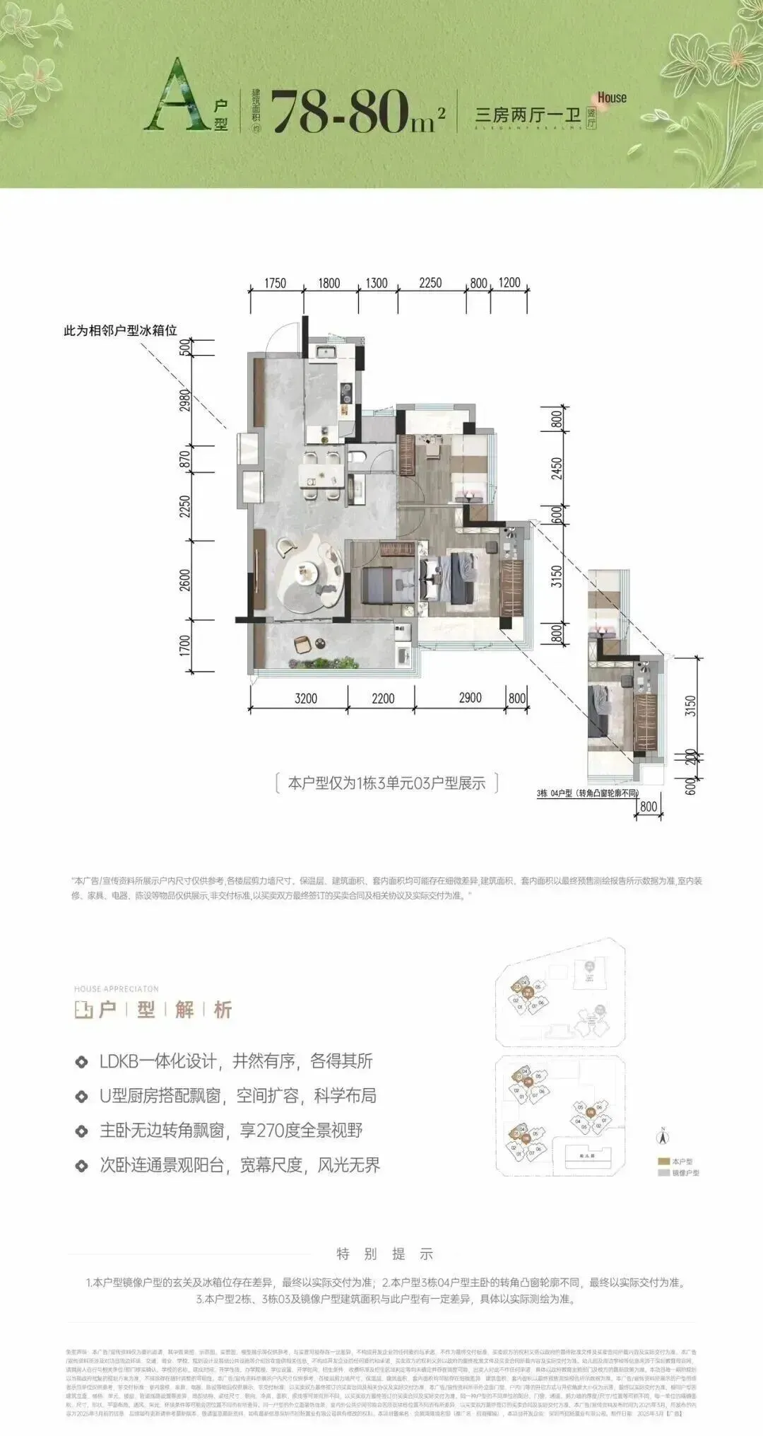 80㎡三房,均价4.9万元/㎡,总价约340-405万