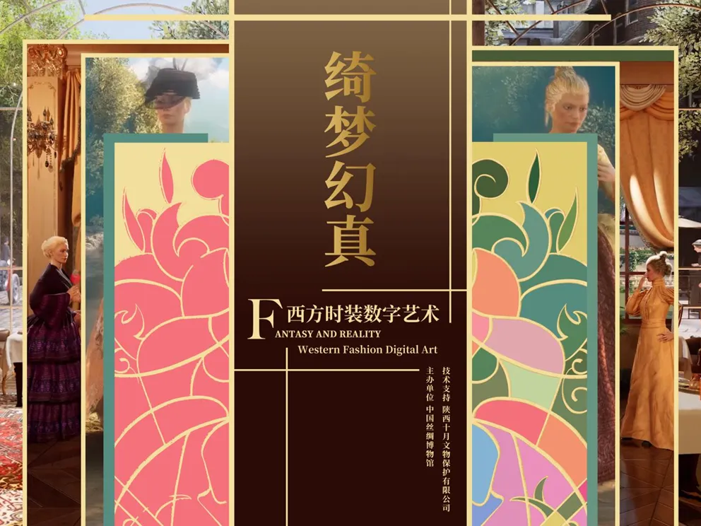 2024年11月16日,首届“丝尚盛典”系列活动中,国丝基于馆藏西方服饰数字化成果,推出国内首个以西方时装发展历史为主体的沉浸式数字化展览“绮梦幻真:西方时装数字艺术”。展览精选了20件馆藏西方经典时装,通过3D服装数字技术和实时虚拟引擎技术,将静态的实物展品转变为生动的虚拟数字人物形象,以数字沉浸式手段再现17至20世纪的西方时装艺术,从而给观众带来更具真实感的数字体验。踏入“绮梦幻真”数字展览,您将被一场跨越时空的时尚之旅深深吸引。从拜占庭的辉煌到未来主义的前卫,每个时期独特的时装艺术在沉浸式空间中生动再现。在这里,科技不仅是展示的辅助,更是连接过去与未来的桥梁,让您仿佛穿越时空,亲身感受服装文化的深厚底蕴与无限魅力。