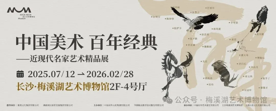 《中国美术 百年经典》近现代名家艺术精品展汇集近50位近现代艺术大师真迹,75幅极具代表性的原作齐聚长沙,系统呈现中国二十世纪美术的发展脉络与精神气象,铺展出一幅波澜壮阔的百年艺术长卷。