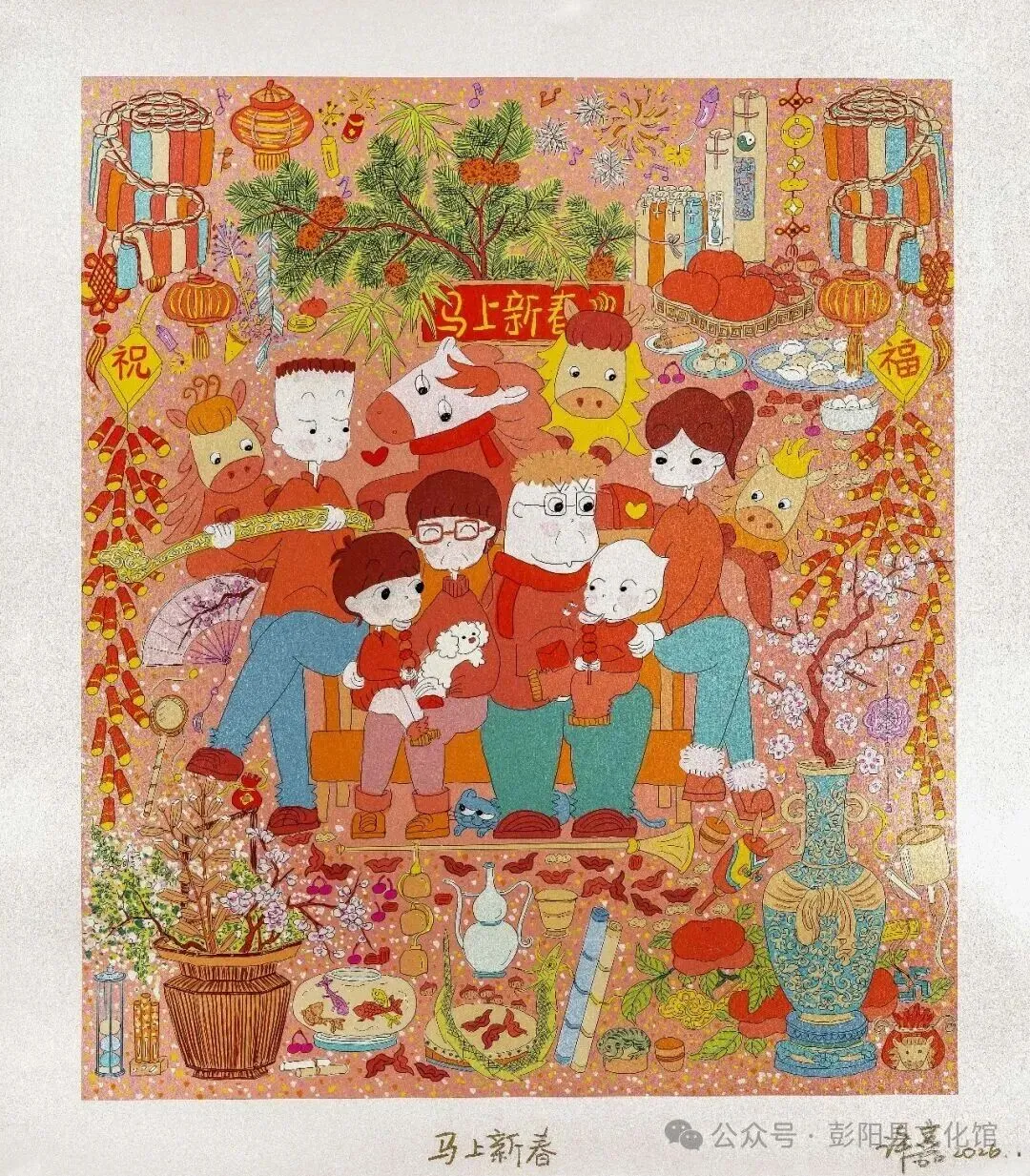 为深入学习贯彻党的二十届四中全会精神,传承弘扬中华优秀传统文化,丰富人民群众节日精神文化生活,激励广大群众振奋精气神、共创新生活,中央宣传部文明实践局、文化和旅游部公共服务司、中国美术家协会、中国民间文艺家协会联合举办2026年“新生活 新风尚 新年画”美术创作展示活动。现推出年画线上展,让我们循着年画的墨香与斑斓色彩,感受浓郁的新春年味。
