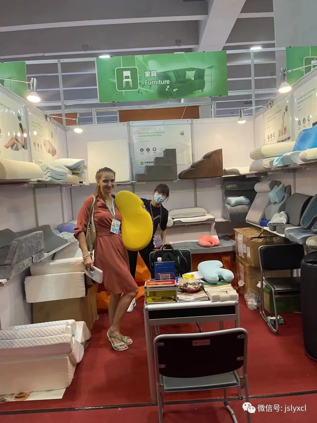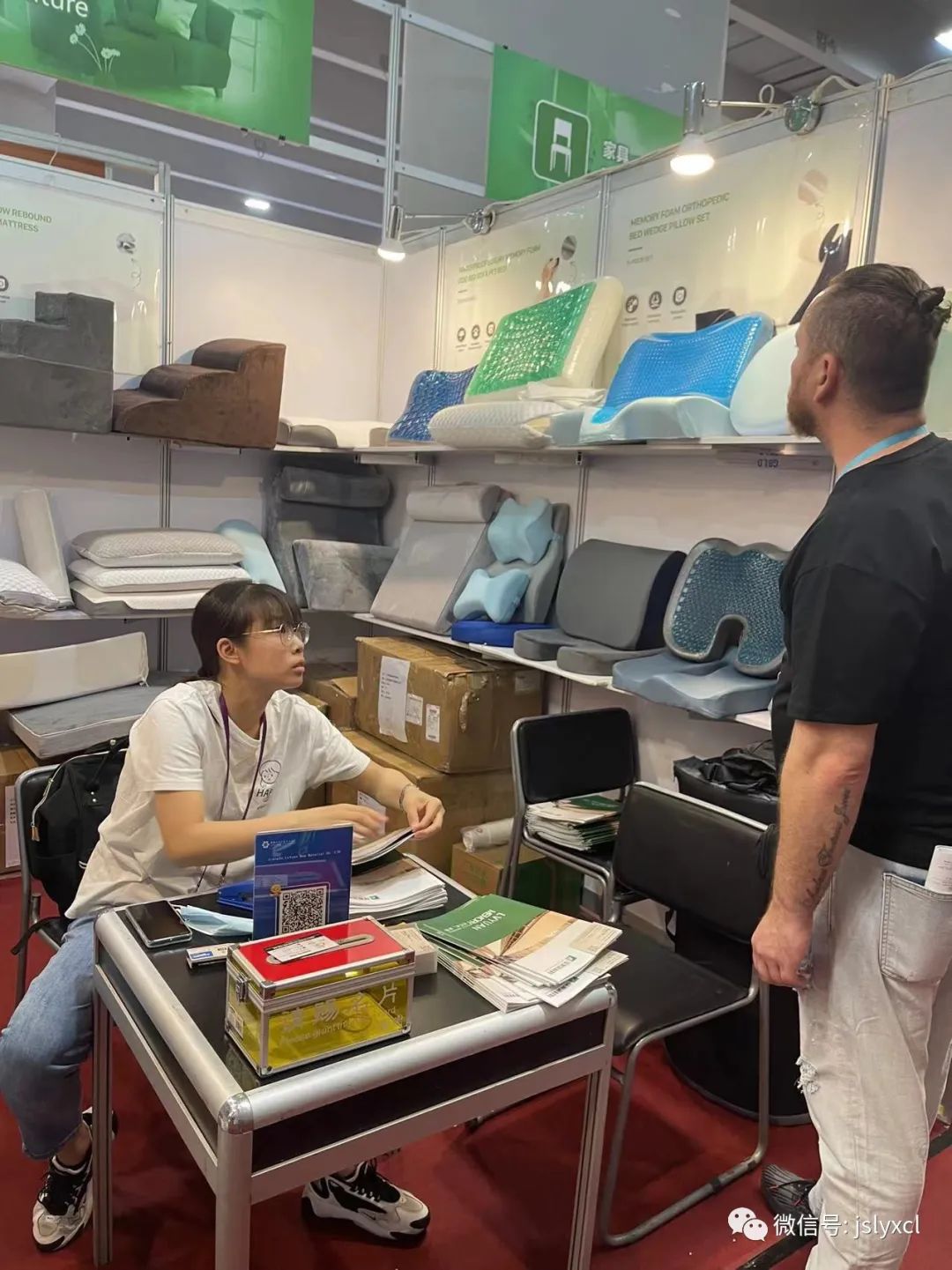 这次展会,绿源可谓是"有备而来", 我们带去了很多新产品:记忆棉U型枕、乳记忆棉狗窝、记忆棉宠物楼梯、蝶形按摩枕、 颈椎舒缓枕、酒店传统床垫等等。其中酒店床垫还是特地为展会定制的,它带有剖面结构,客户一眼就可以看出床垫里面是样式和材质了。另外,为了满足不同人群的需求,记忆棉产品几乎应有尽有,相信总有一款符合您的胃口。