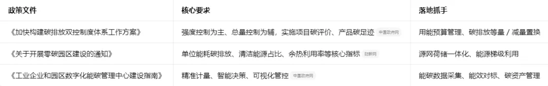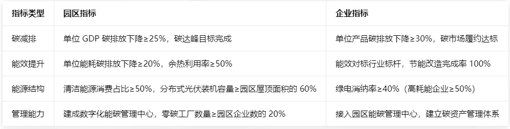 :制定园区碳达峰目标(如单位 GDP 碳排放下降 25% 以上),分解至企业、生产线,明确年度节点与考核指标。 - 数字化底座建设