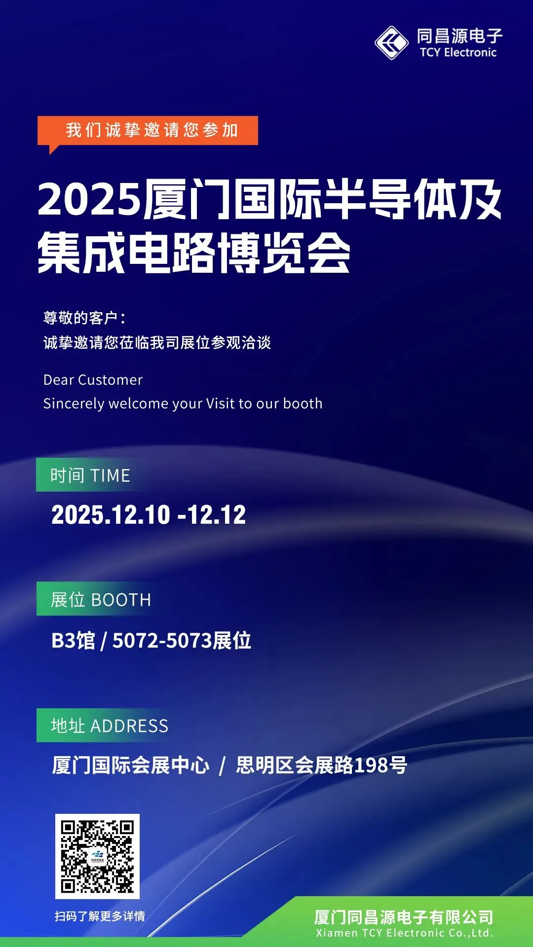 厦门同昌源电子受邀参加此次展会,将于12月10日在厦门国际会展中心隆重召开,期待您的莅临!