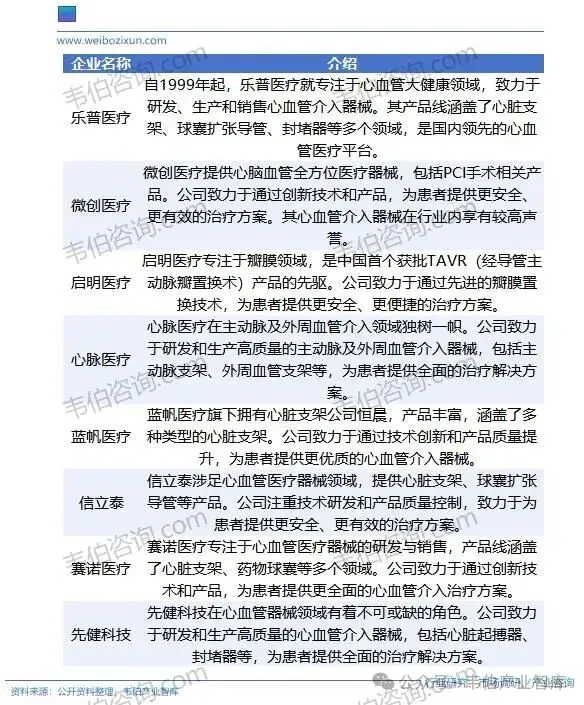 图表3:中国心血管介入器械行业代表性企业简介