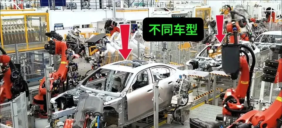 很多人以为汽车生产线就是一条传送带,车架过来,机器人焊接,然后下一台。错了,一条汽车生产线是要去生产多个车型,包括多种配置的,它是同时进行交叉生产的,不是一条线就去造一个车。