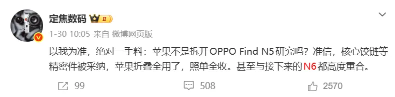 综合之前的消息,这个“国际大厂”很可能就是苹果,毕竟他们之前就被曝买过Find N5回去研究。