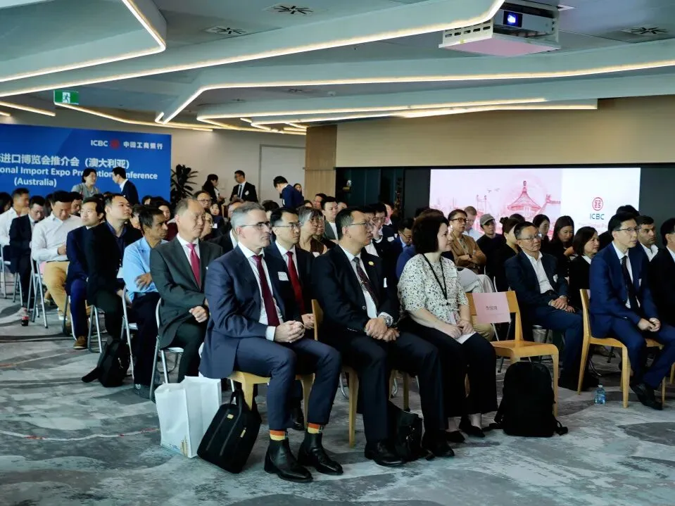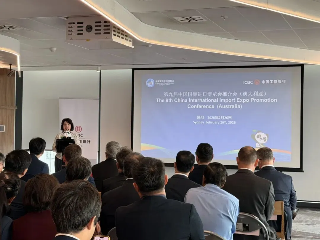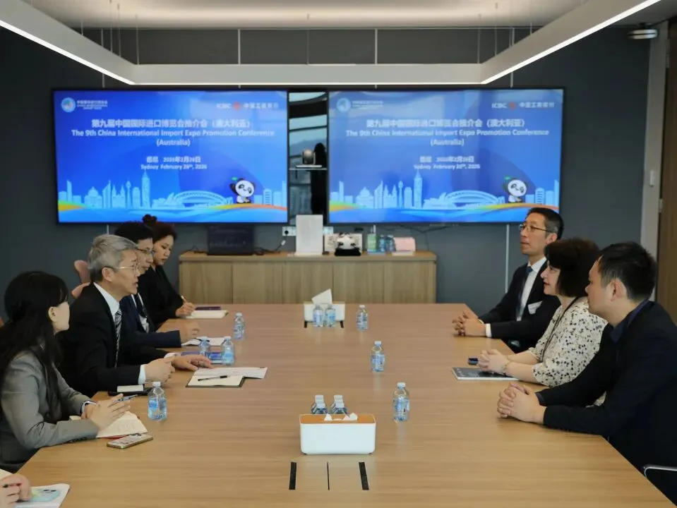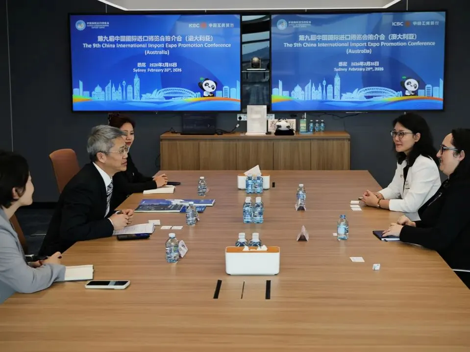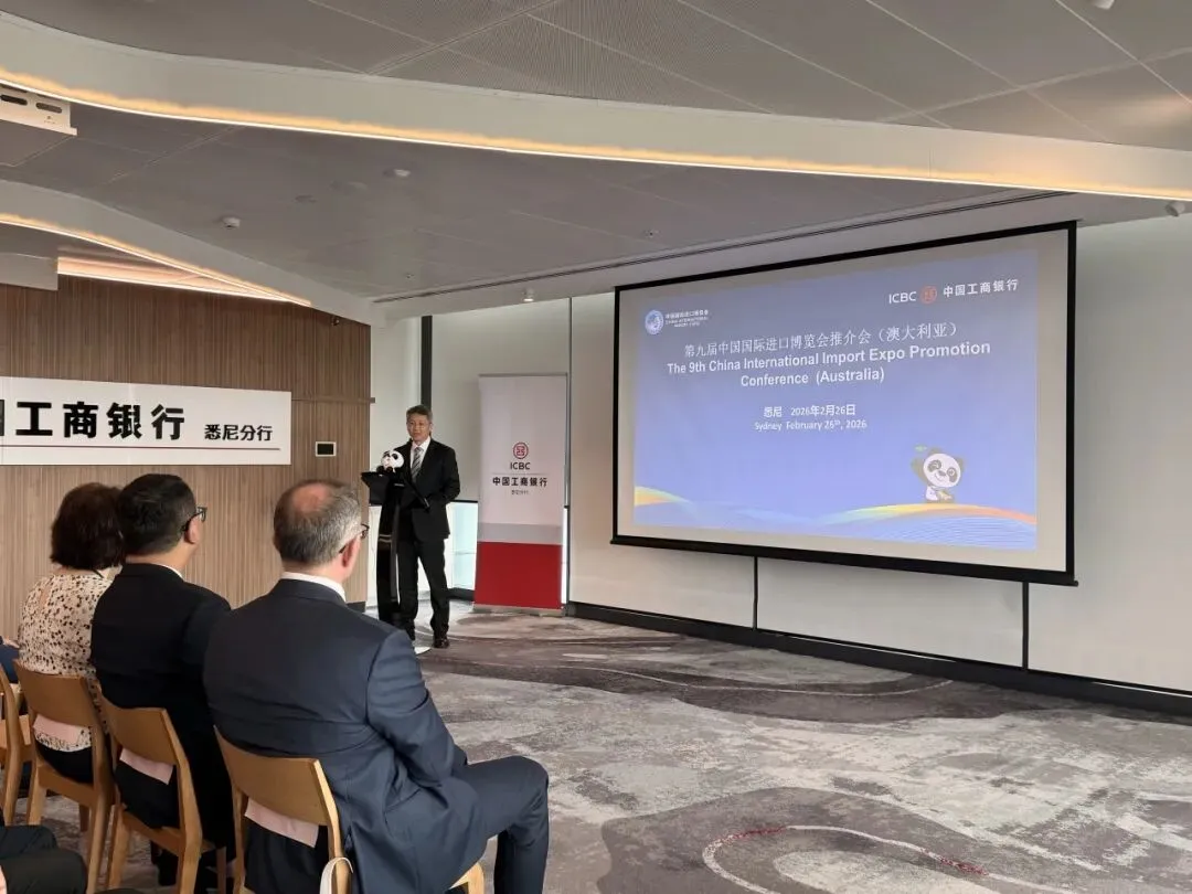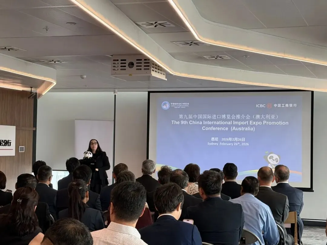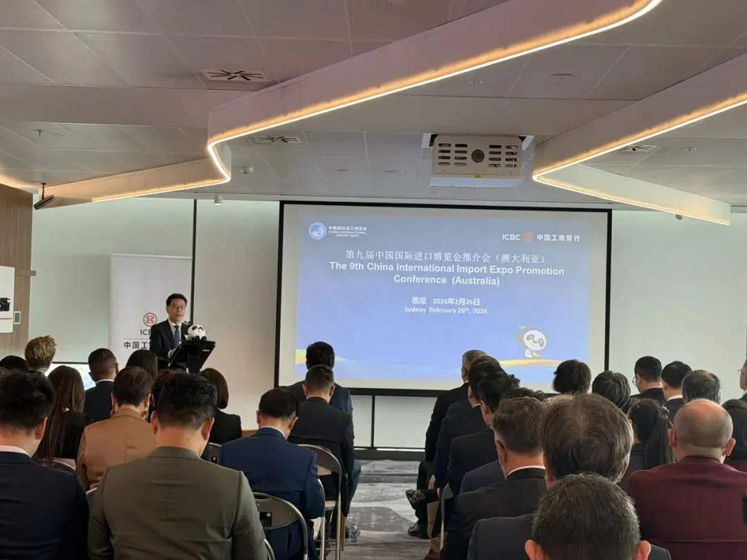 当地时间2月26日至27日,第九届中国国际进口博览会(以下简称“进博会”)澳大利亚推介活动在悉尼举办。活动期间,分别于26日、27日上午举办推介会和座谈会。中国国际进口博览局副局长李国清、中国驻悉尼总领馆经商处参赞叶威、澳大利亚投资与贸易部绿色能源、农业、食品与快消品总经理Susan Kahwati、昆士兰州贸易投资局国际业务经理Anna Fedeles、澳大利亚中国工商业委员会首席执行官Patrick Mayoh、中国银行悉尼分行行长李芒、中国工商银行悉尼分行行长陈建愉及澳大利亚企业代表等出席相关活动,并围绕推动更多澳大利亚企业参展参会进行交流座谈。