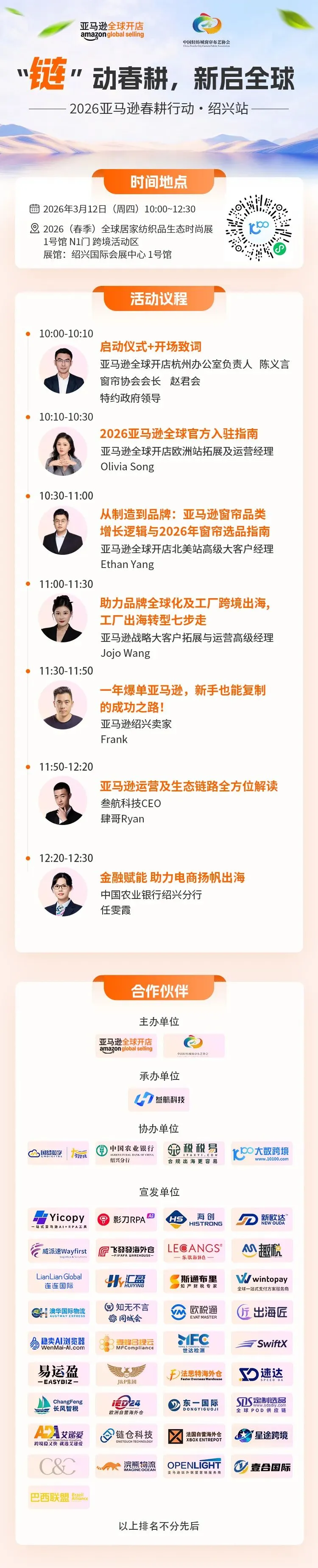 2026春季全球居家布艺展跨境活动区论坛之一——亚马逊专场活动:“链”动春耕,新启全球!2026亚马逊春耕行动·绍兴站来了!