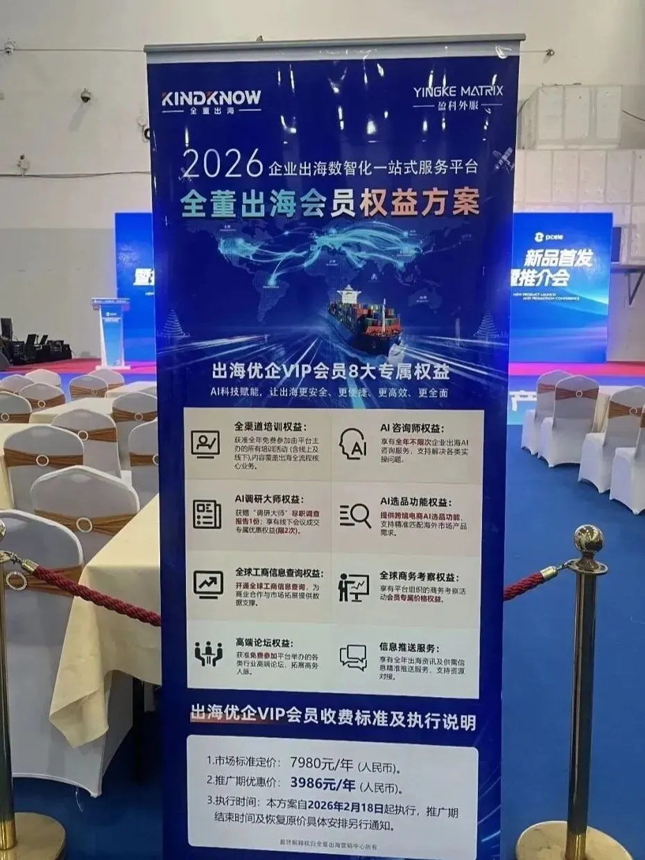 针对广大中小企业“很想出海,但怕成本高、怕踩坑”的普遍痛点,徐非凡总经理在演讲中重点推介了 “全董出海优企会员权益方案”,这一产品被视为降低出海服务门槛的破冰之举。企业仅需 3986元/年即可加入全董出海VIP会员体系,享受包括AI智能咨询服务、AI出海调研、AI选品功能、AI选品功能、全董出海全渠道出海实战培训、全球工商信息查询权益、全董出海组织的全球商务考察会员专属价格权益、每日出海资讯信息推送等在内的8大专属权益。