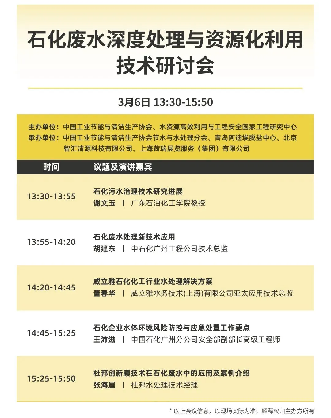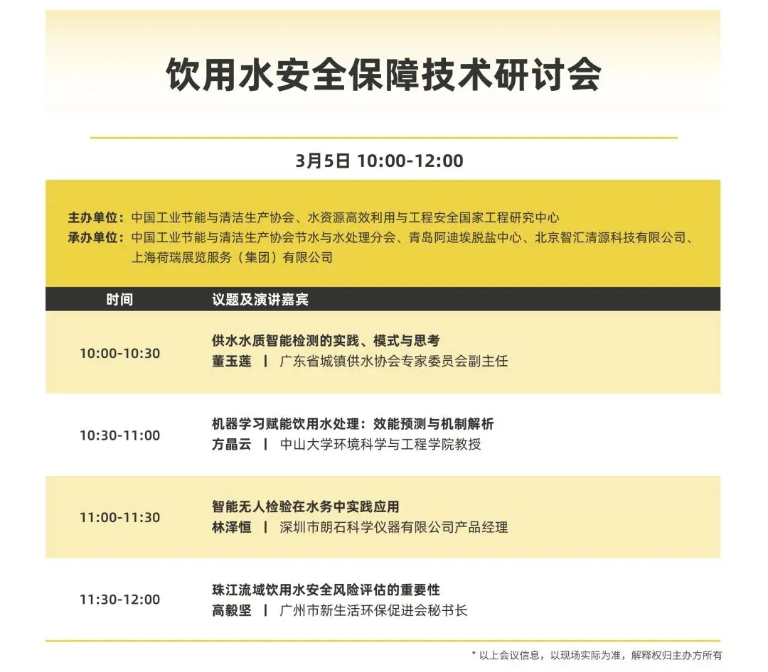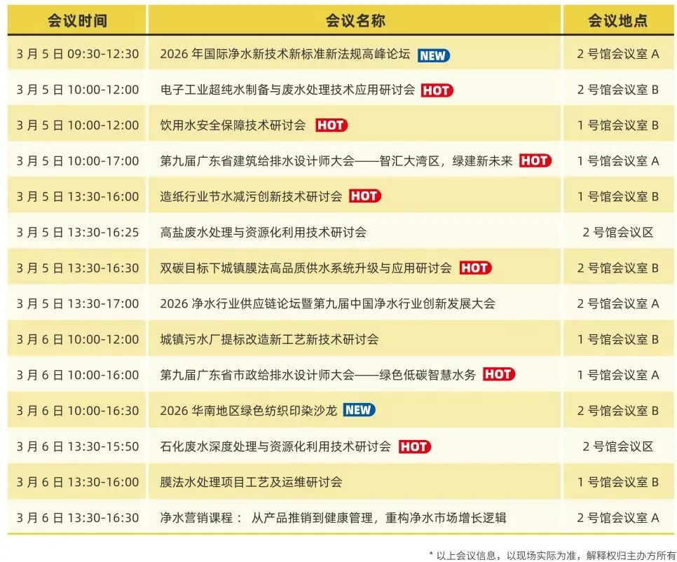 展会不仅携手多家知名协会媒体,现场打造10+专题论坛,会议聚焦智慧水务、石化/新能源废水处理、造纸/纺织节水减污、净水供应链、营销与新技术、建筑/市政给排水等时下热点话题。提前掌握行业新概念与新技术!