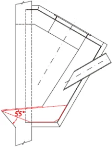 将分解炉出风口宽度加宽,加大分解炉主炉至C5连接管道的出口面积,见图5所示(虚线为改造前结构,红色线条为改后结构),以降低该处的出口风速和局部阻力损失。