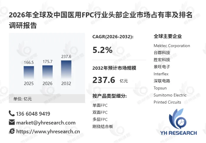 以下内容来自恒州诚思YHResearch出版的《2026年全球及中国医用FPC行业头部企业市场占有率及排名调研报告》,同时提供英文,日文,韩文等不同语种版本报告。