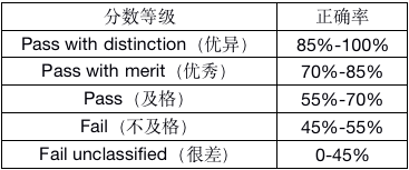 通过要求:正确率55%以上,即答对28道题及以上