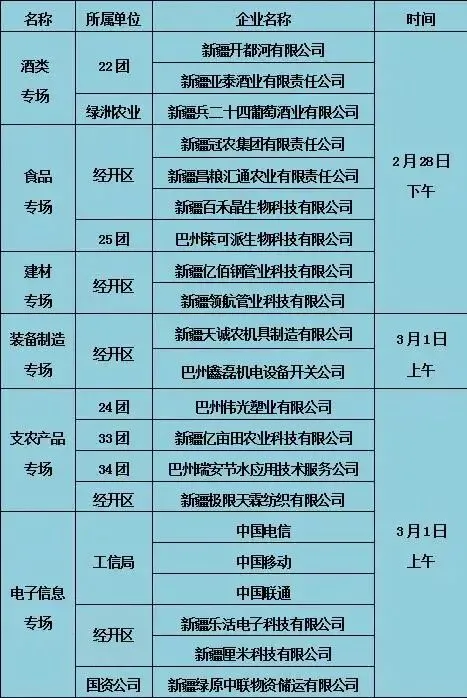 专场推介会企业及参展时间