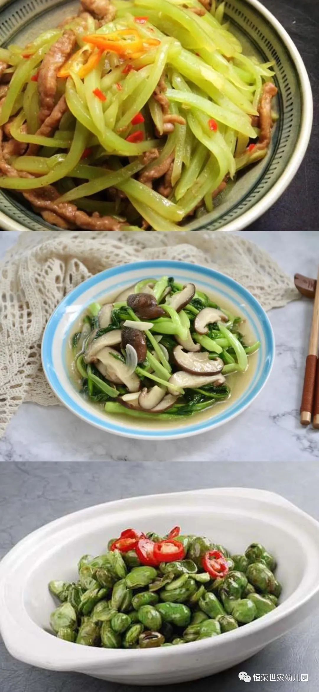 营养午餐:莴苣炒肉丝 青菜炒香菇