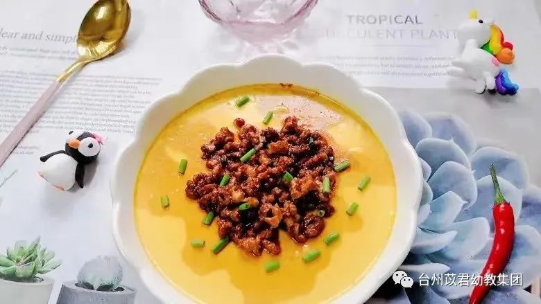 肉末蒸蛋、虾皮蒲瓜、蘑菇鸽子汤