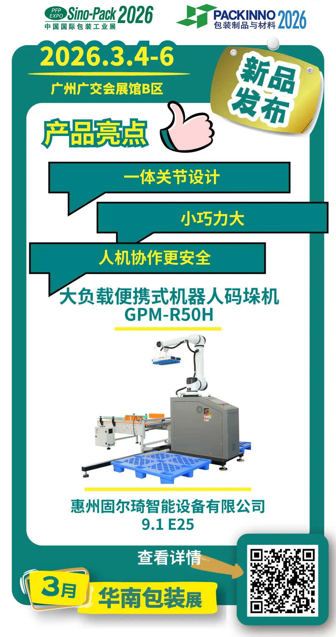 从便携式机器人到全自动工作站,提供灵活、高效的码垛选择,提升产线整体效率。如固尔琦的大负载便携式机器人码垛机,勃肯特的智能开装箱码垛工作站,华盛控的工业协作机器人,小黄蜂的R600自走式缠绕机器人,助您实现降本提效。