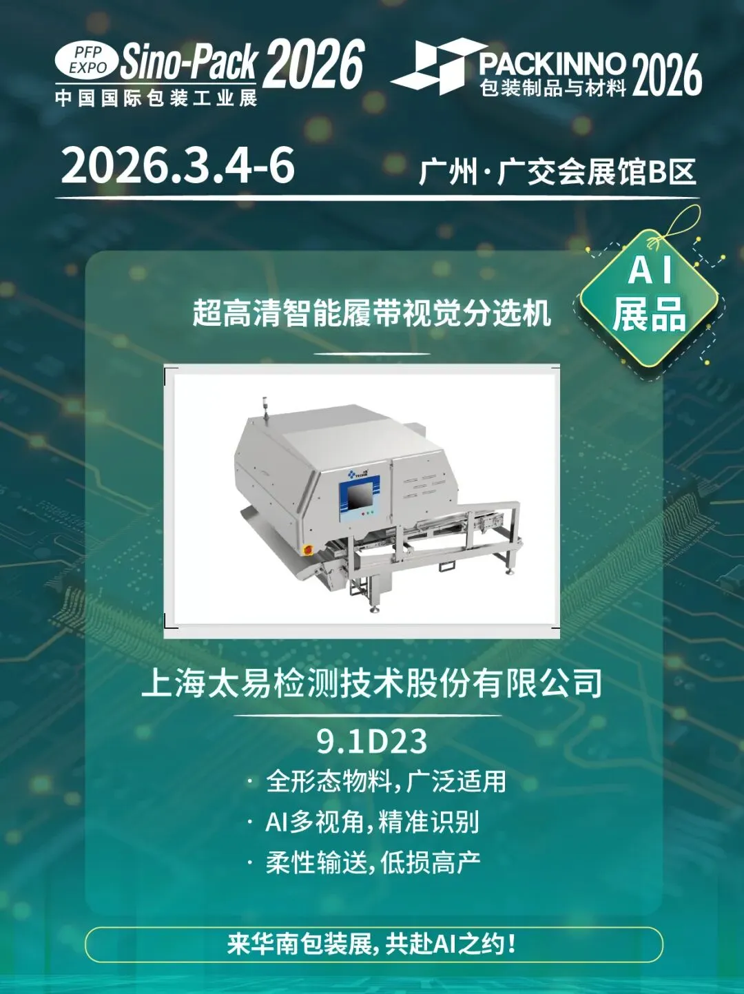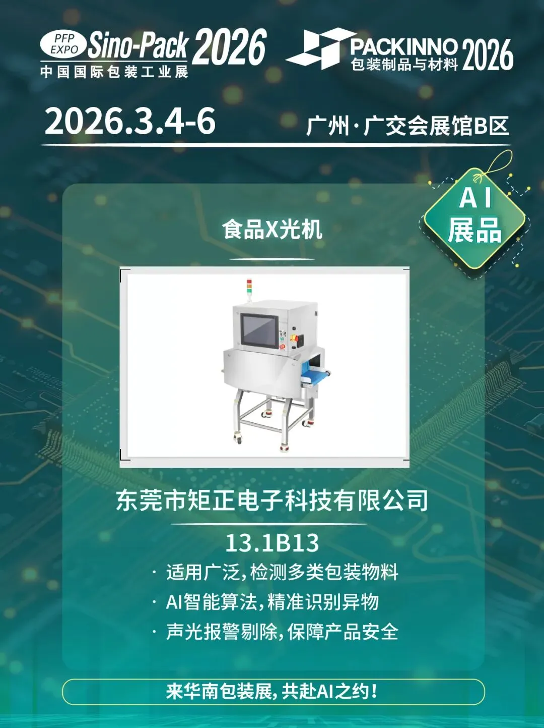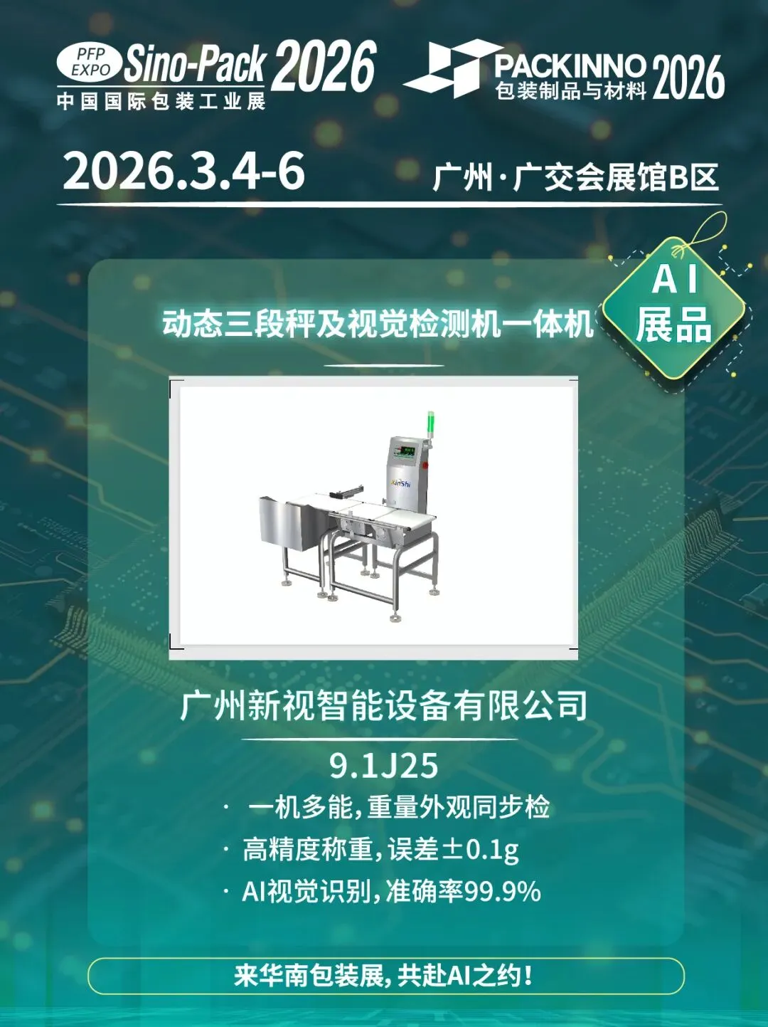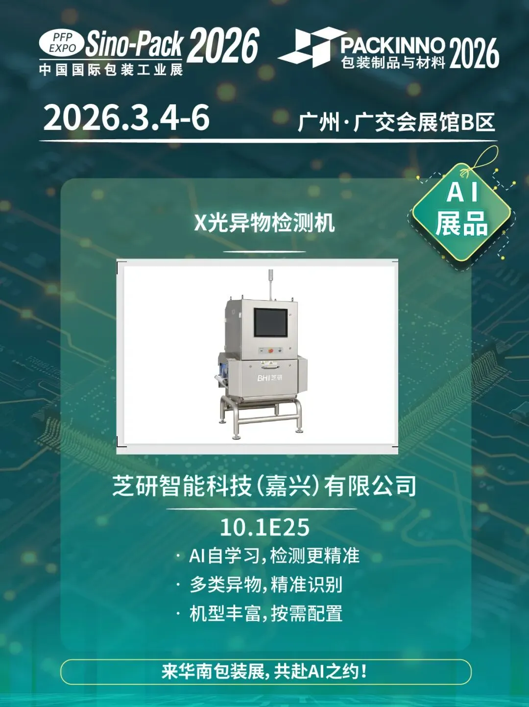 在重量、外观、异物检测等关键品控环节,AI正构建起无缝的安全防护网。2026华南包装展汇聚前沿的AI视觉检测、X光检测与智能标识技术,为您提供从在线检测到数据追溯的全链路品控解决方案,显著提升质量稳定性与生产合规性。如: