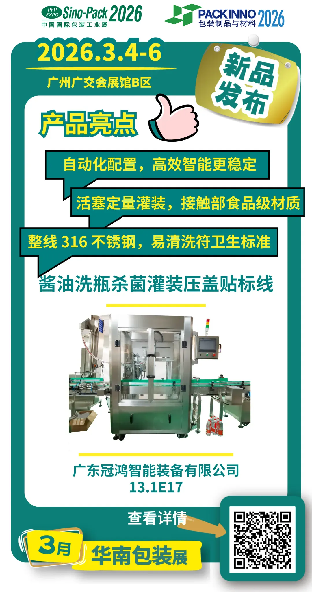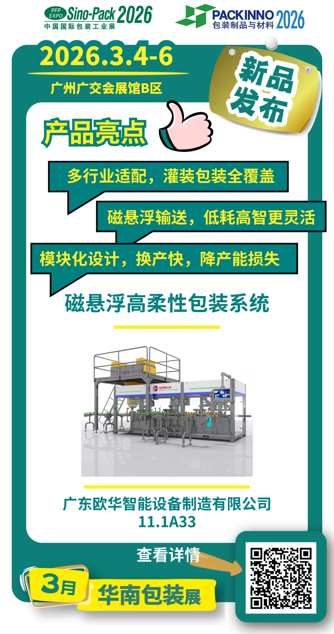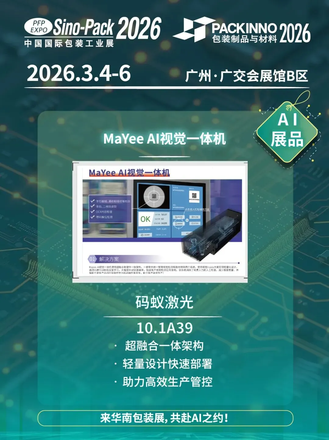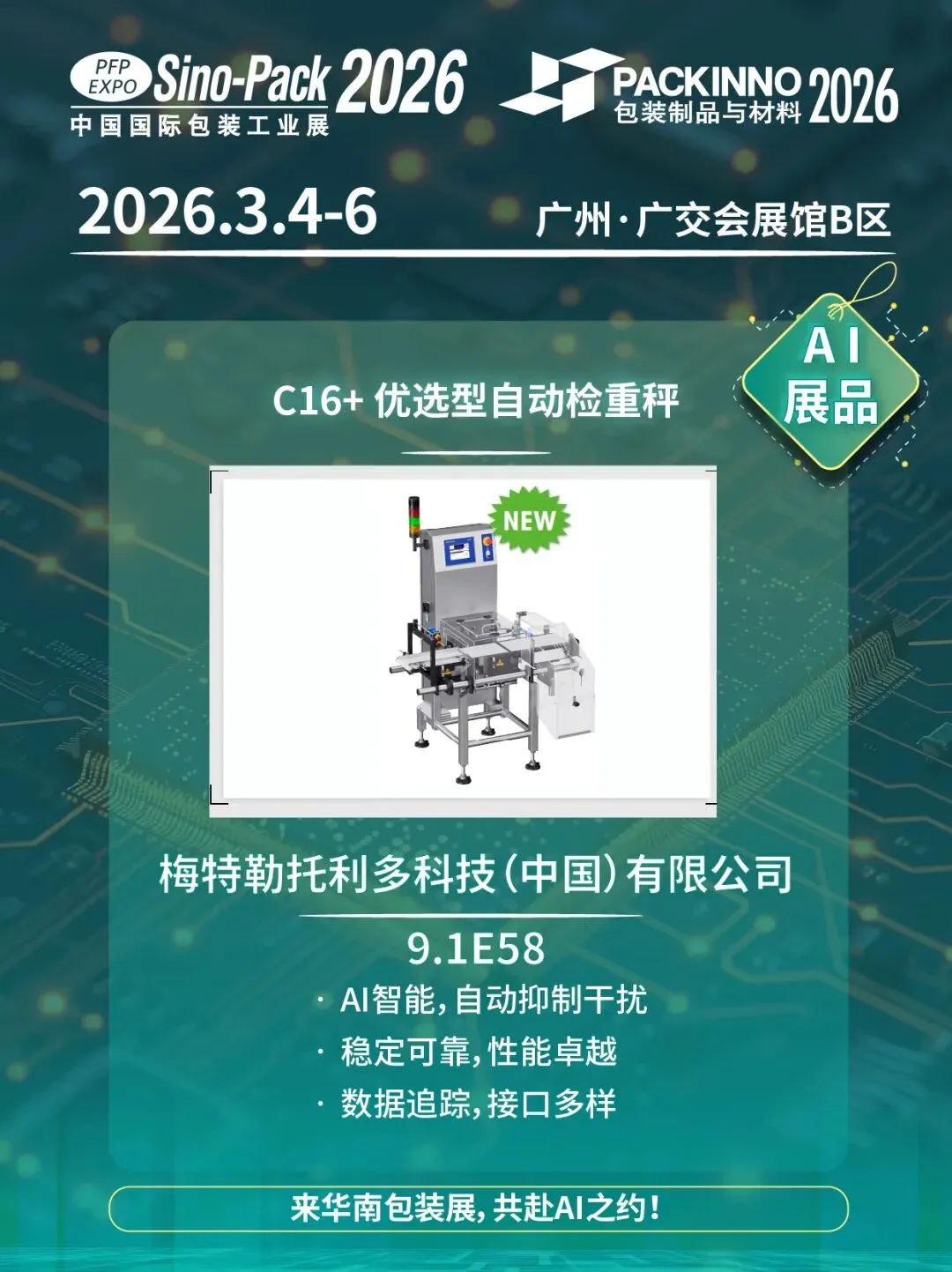在重量、外观、异物检测等关键品控环节,AI正构建起无缝的安全防护网。2026华南包装展汇聚前沿的AI视觉检测、X光检测与智能标识技术,为您提供从在线检测到数据追溯的全链路品控解决方案,显著提升质量稳定性与生产合规性。如: