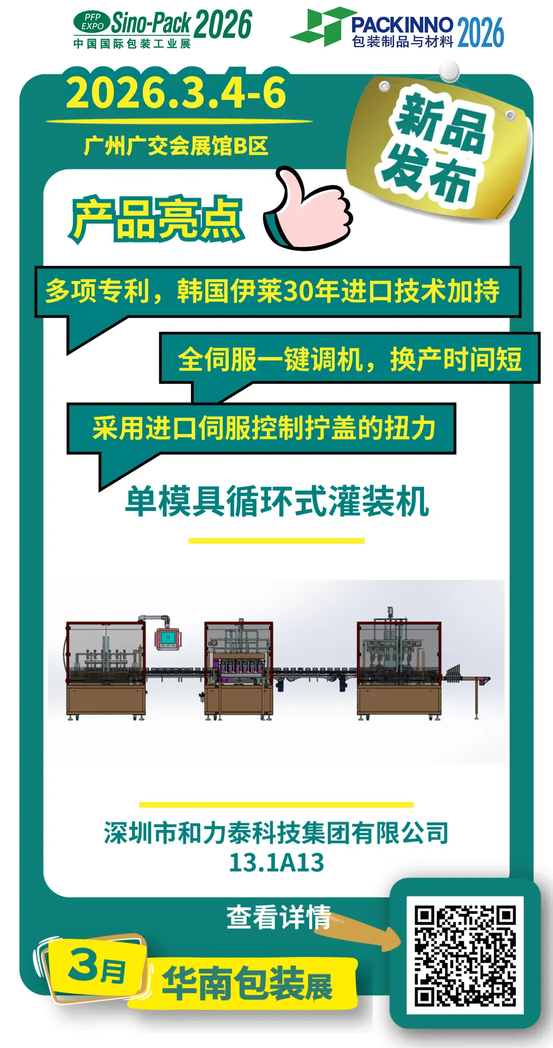 汇聚从灌装到旋盖的高柔性、高精度设备,如欧华的磁悬浮高柔性包装系统,和力泰的单模具循环式灌装机,广州方圆的跟随式高速旋盖机,冠鸿的酱油洗瓶杀菌灌装压盖贴标线,助您实现一键调机、快速换型,减少停机时间,提升生产效率。
